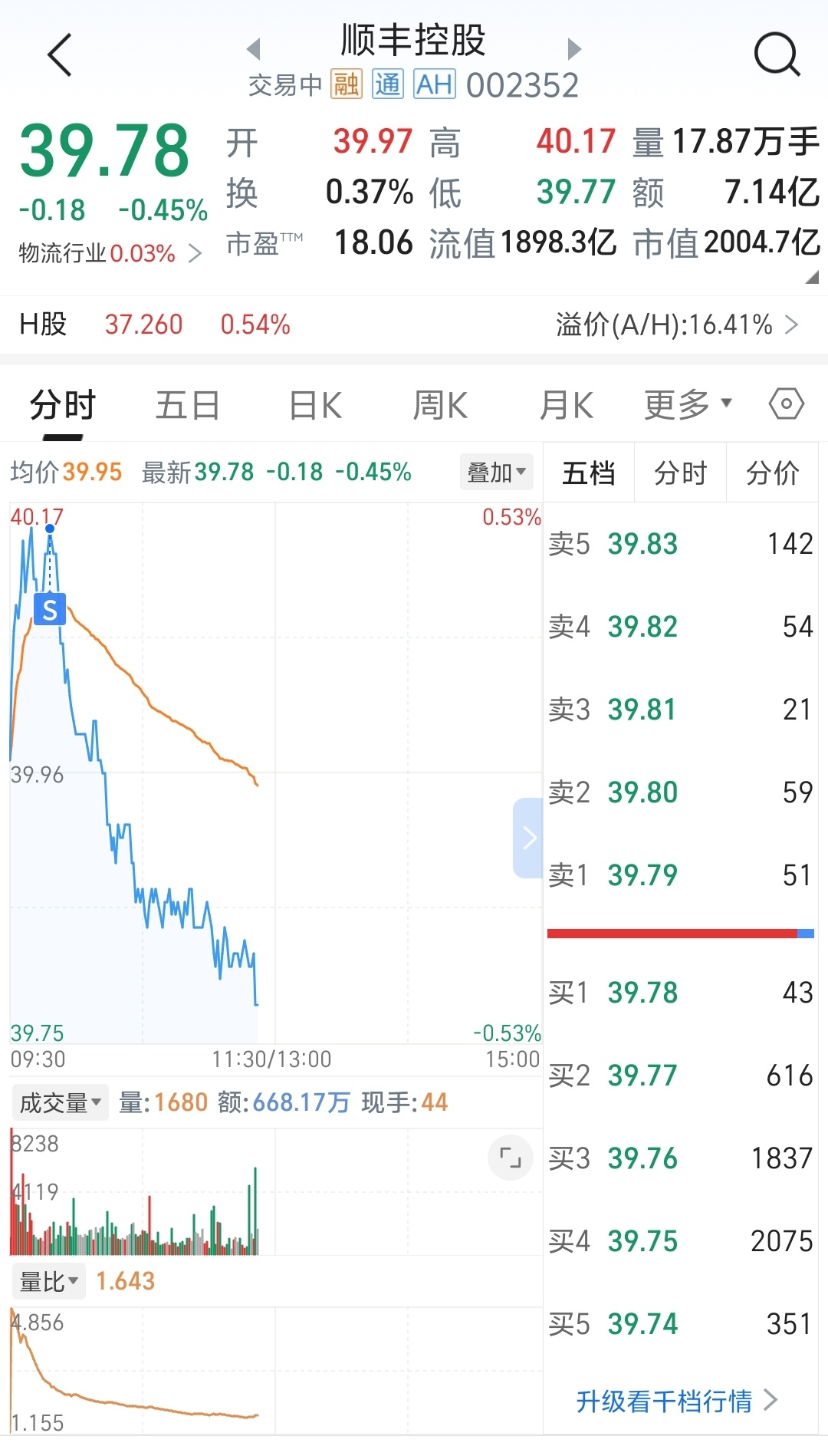$顺丰控股(SZ002352)$ 成功逃顶,进军科技
