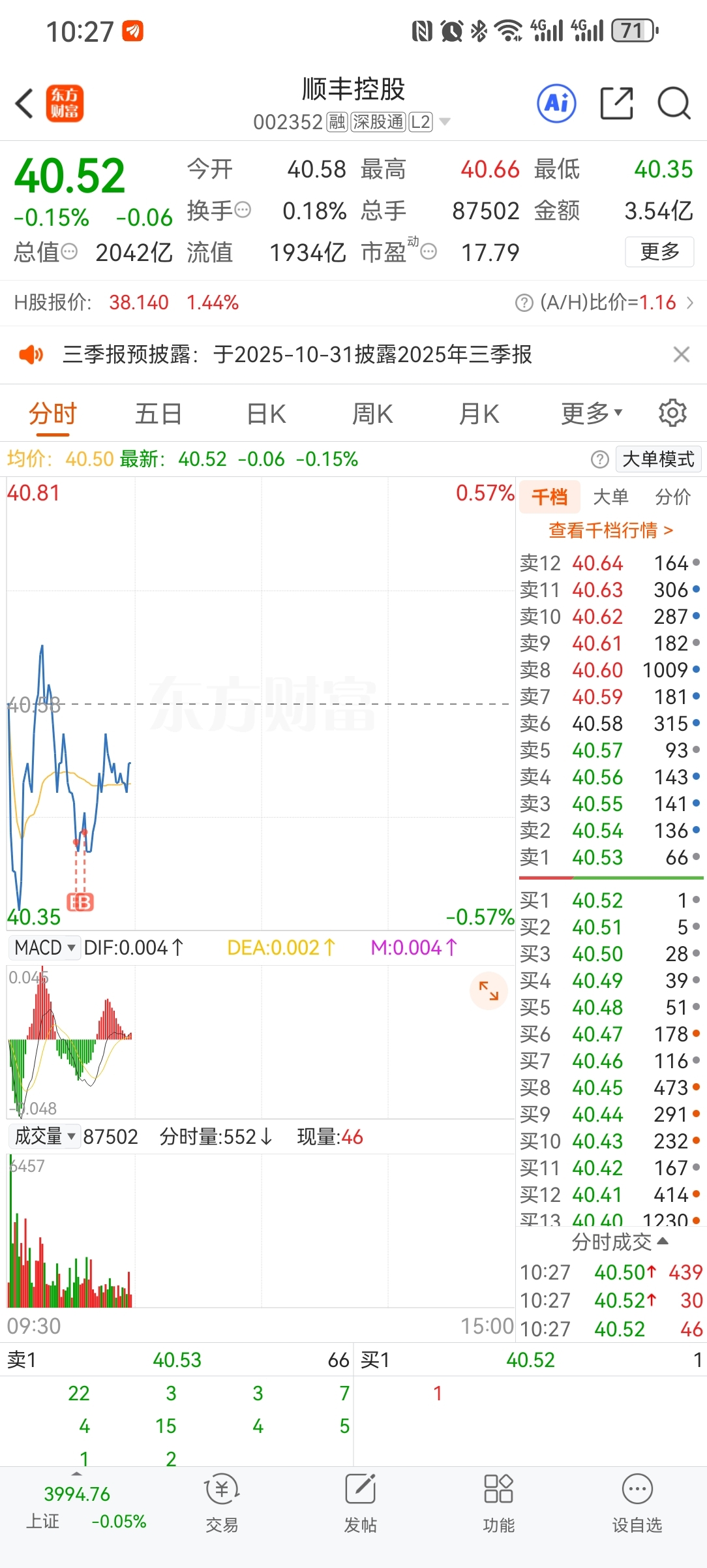 $顺丰控股(SZ002352)$ 帮主力出点货
