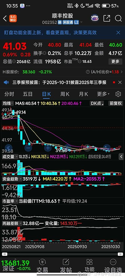 一脚踢k线能否走出来?开关在公司三季报手里?经历了前面的大资金的狂卖后的顺丰近期