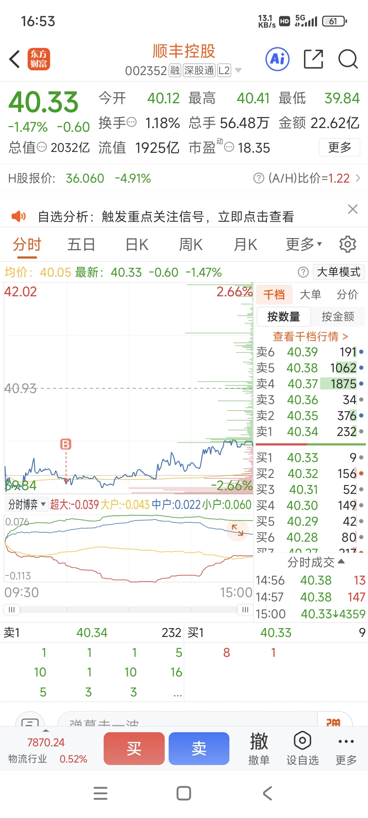 $顺丰控股(SZ002352)$ 早盘就是倒车接人,坚持就是胜利。