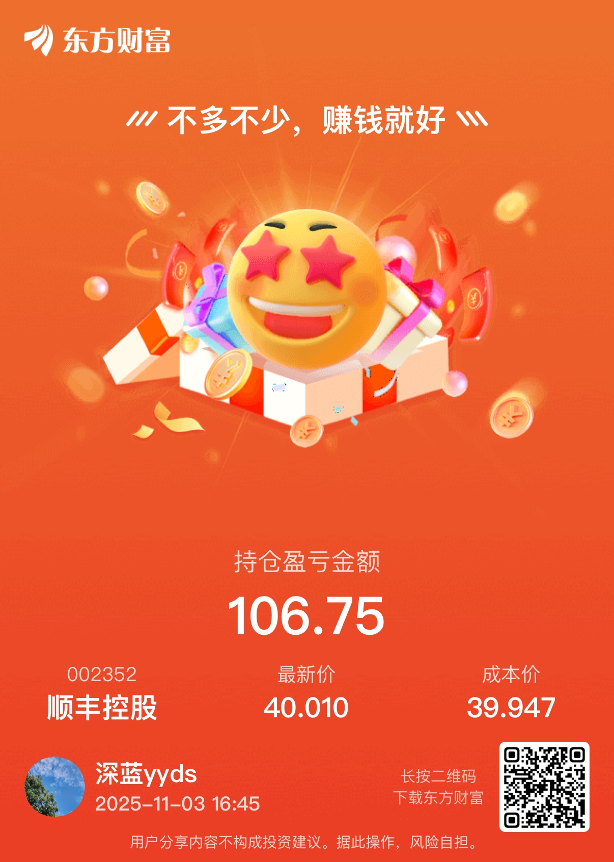$顺丰控股(SZ002352)$ 平常心对待,坚定持仓到 45。