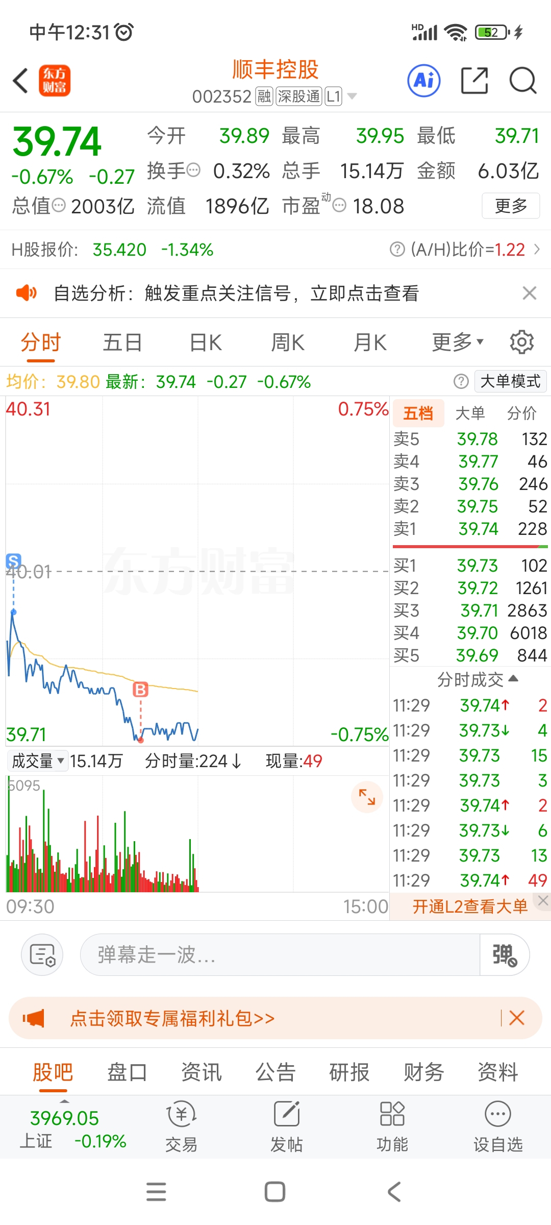 $顺丰控股(SZ002352)$ 兄弟们,星尘勇敢的T了GOU庄半个点,真是一潭死水呀!明天再不动就清仓