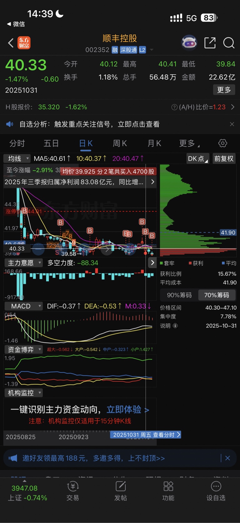 $顺丰控股(SZ002352)$ 哈哈,来啦朋友。一直在吸,从来没有一丝卖过的念头。看顺丰未来的爆发,这点利润,T 都懒得做