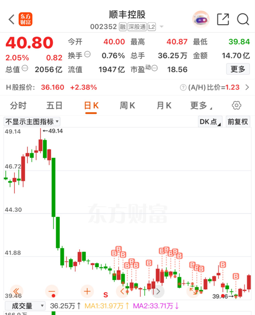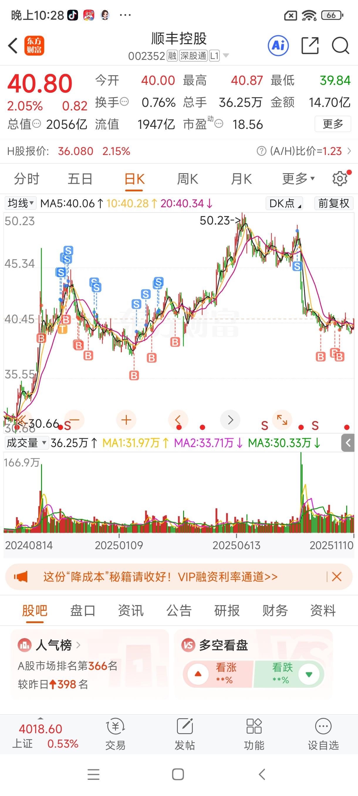 $顺丰控股(SZ002352)$ 锁仓躺平!没有股权激励之前,顺丰的形态非常不错,现在应该是55到60的股价!几个非理性大跌,给了部分小散机会!短期涨跌不可预判,长期看,股价40位置顺丰就是钻石坑!