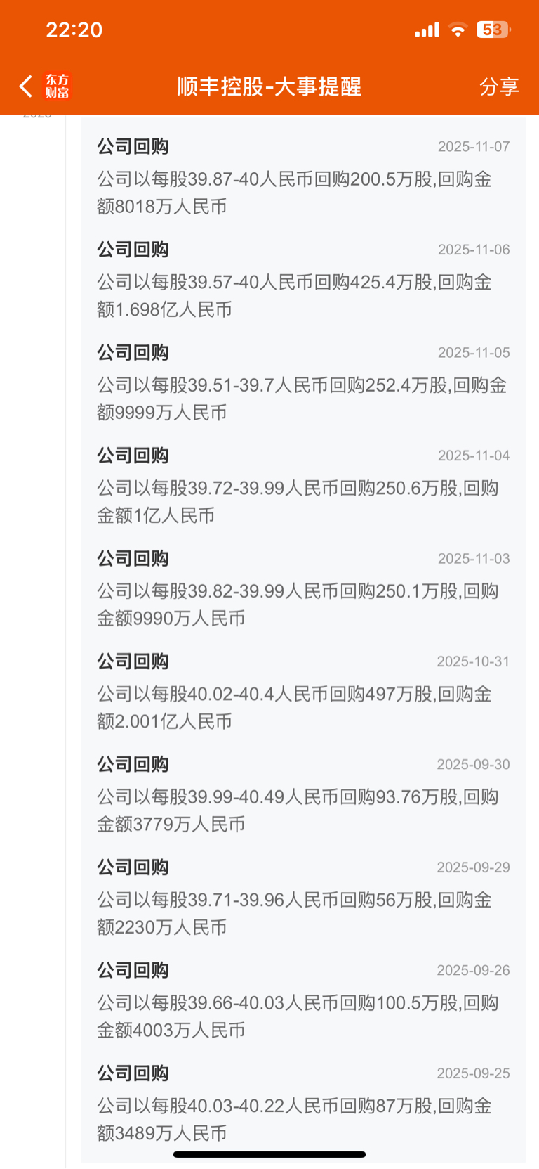$顺丰控股(SZ002352)$ 炒股还得是公司自己,回购的太爽了!