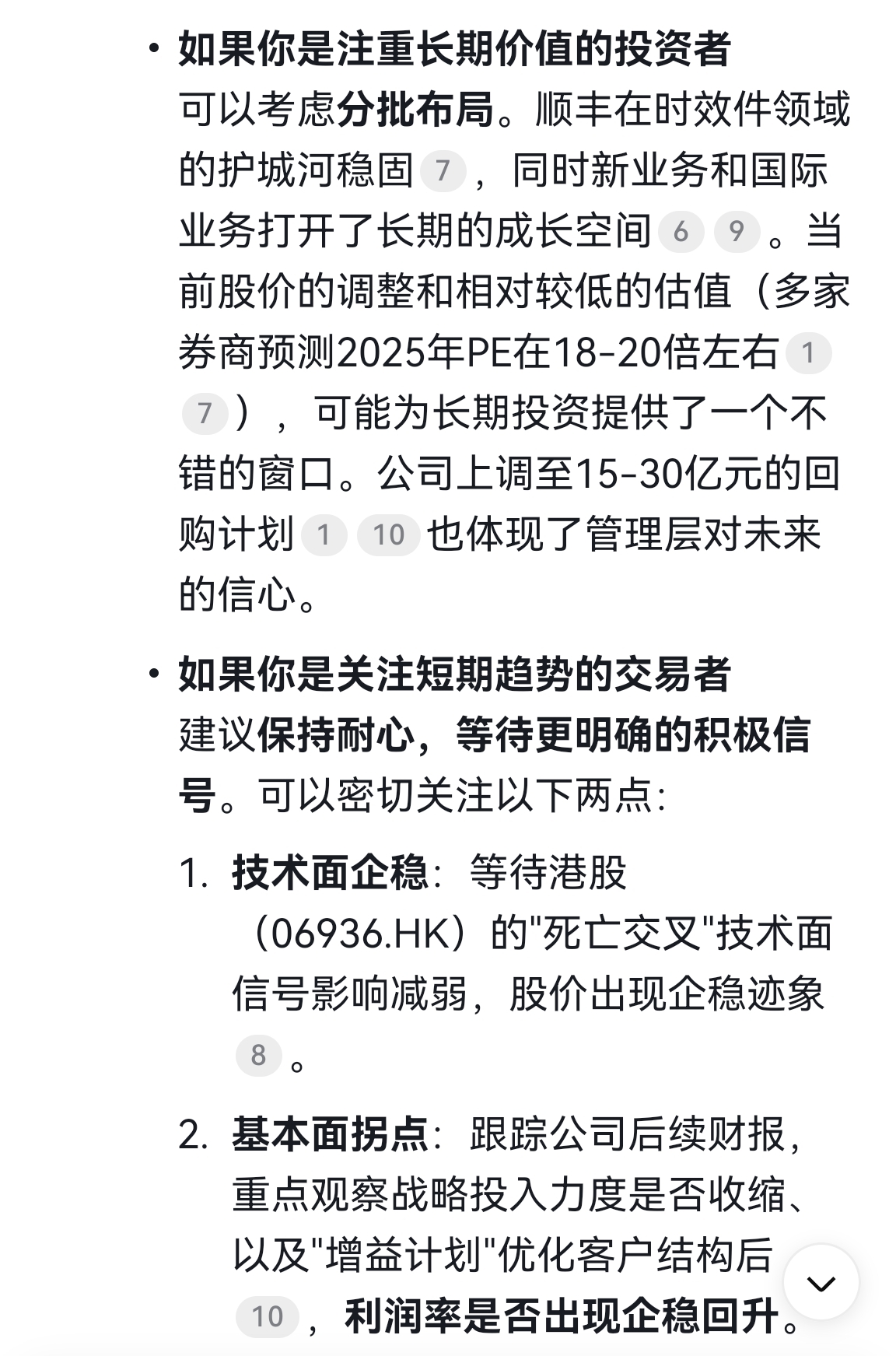 $顺丰控股(SZ002352)$ ai认为,短期内没有上涨机会,长线只适合低仓位布局,短线不宜买入。