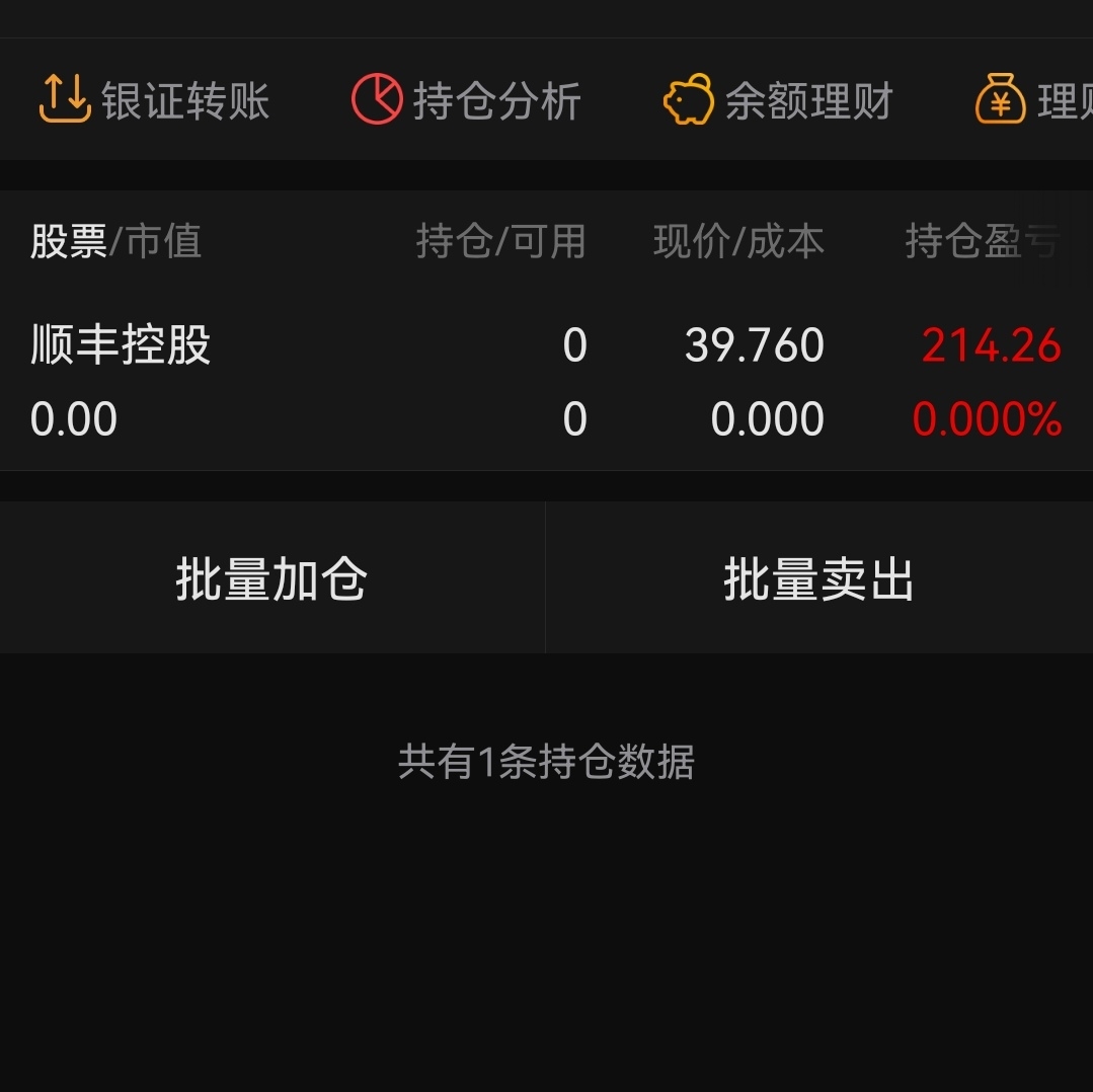 $顺丰控股(SZ002352)$ 踏空没事儿,不赔钱就好