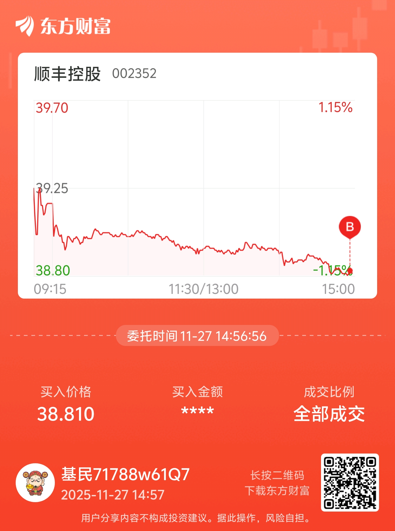 $顺丰控股(SZ002352)$ 不要怕,股息这个高,价格这么低,买到就是赚到。