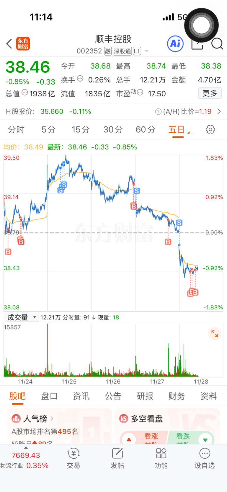 $顺丰控股(SZ002352)$ 像个臭虫一样盯住你,给下跌我就T,管你什么回购这那个的。