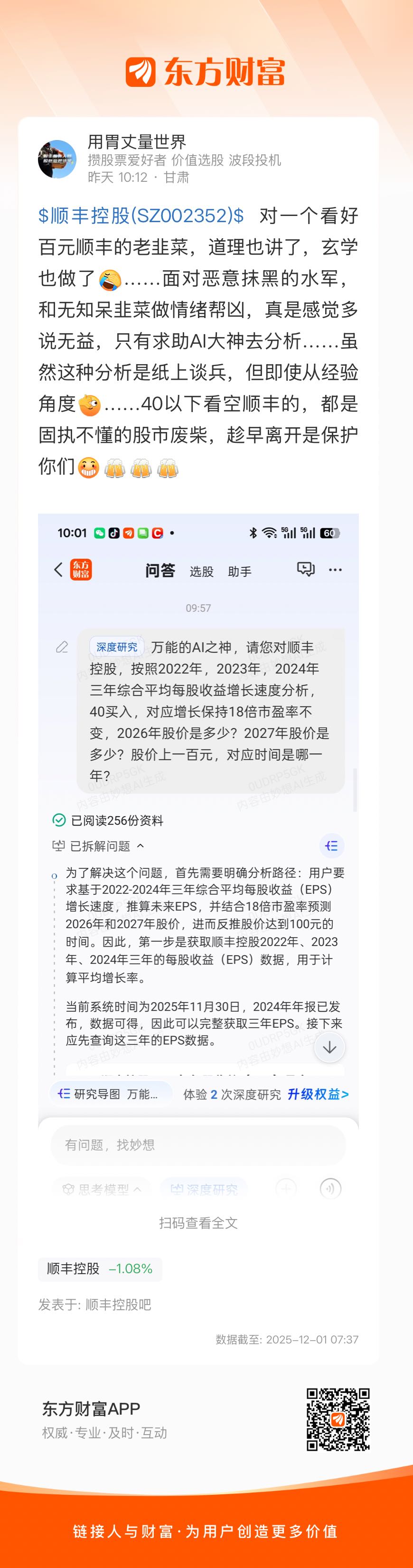 ……40以下看空顺丰的,都是固执不懂的股市废柴,趁早离开是保护你们