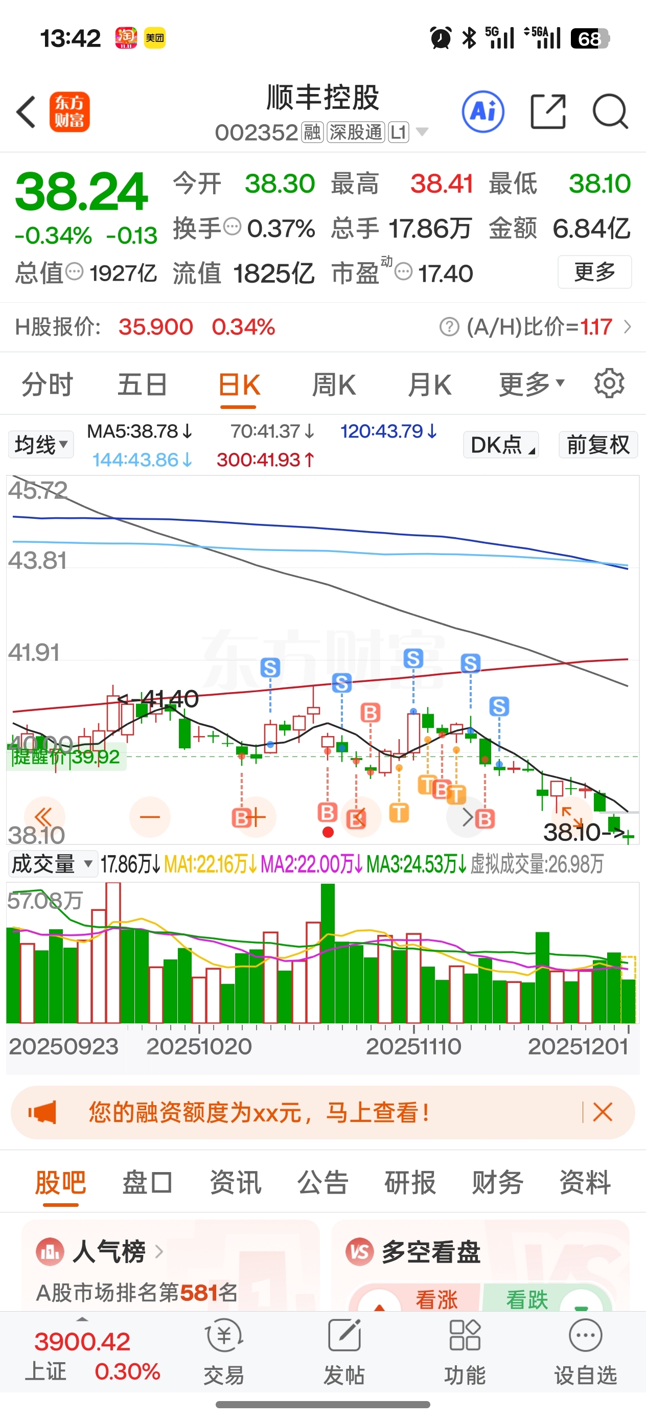 $顺丰控股(SZ002352)$ 好想接回来啊