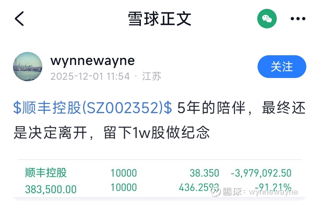 雪球上一个持有顺丰5年的老股民割肉了,一声叹息,顺丰主力真的太过了。