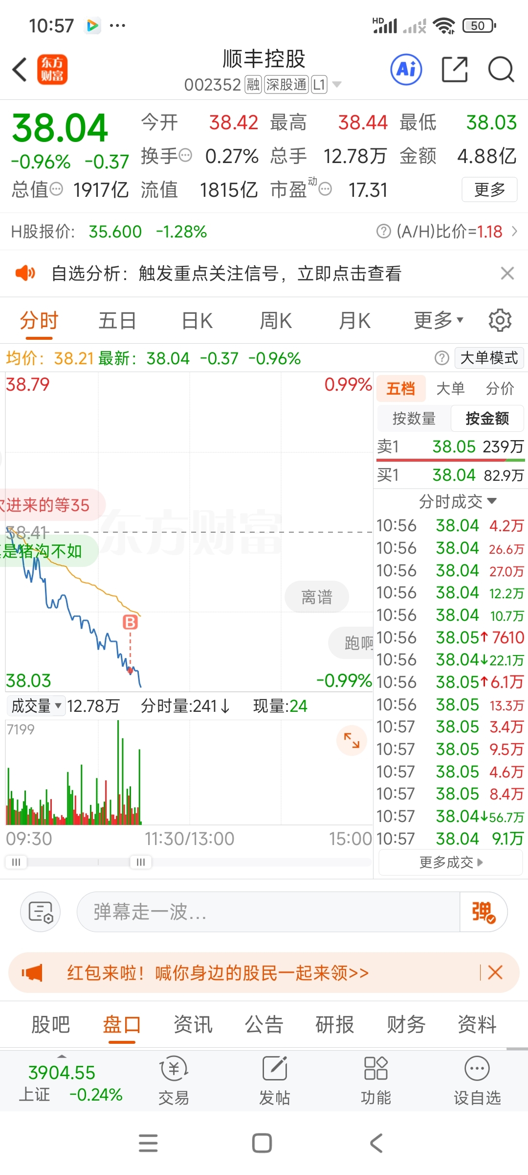 $顺丰控股(SZ002352)$ 刚刚才加仓,又开始扎了。