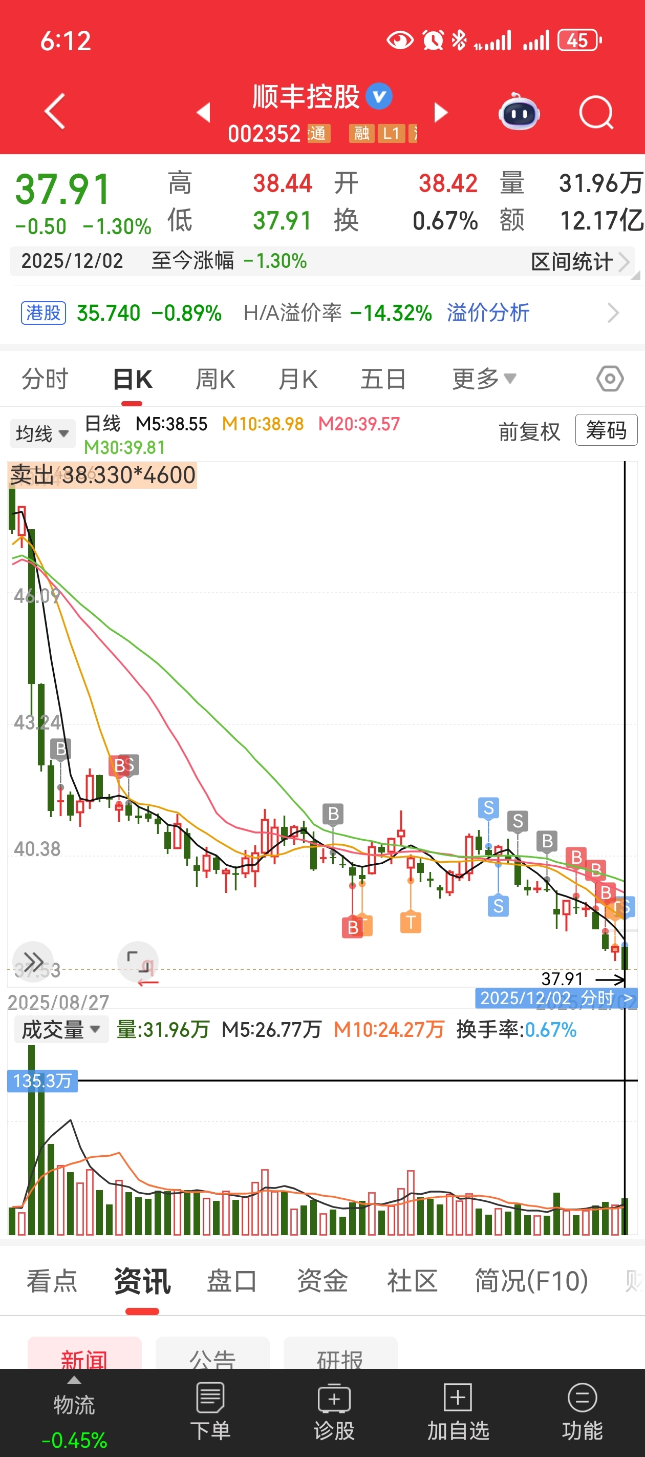 $顺丰控股(SZ002352)$ 拜拜勒顺子