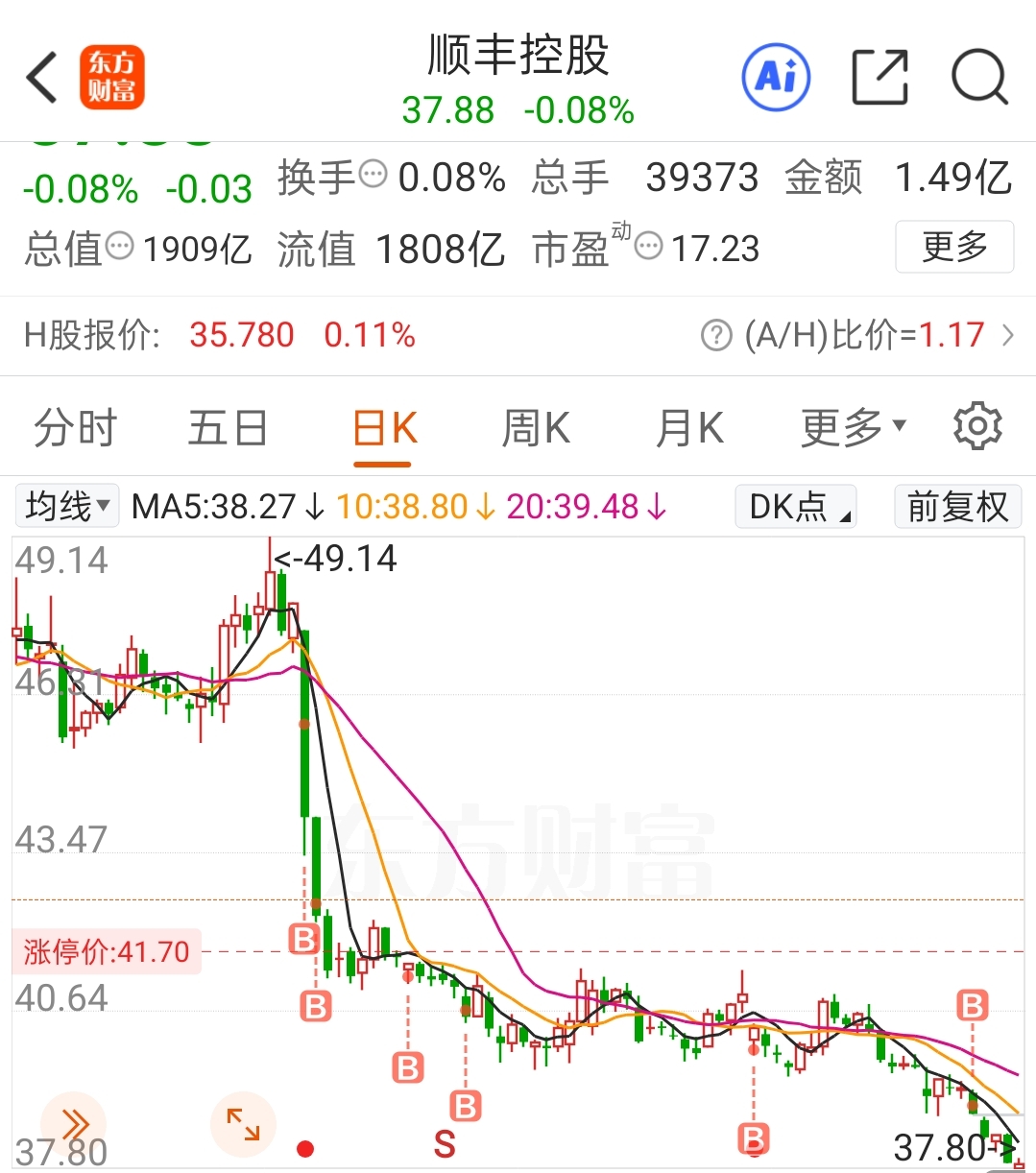 $顺丰控股(SZ002352)$ 天天那样跌还好意思吗?不会再补仓了。