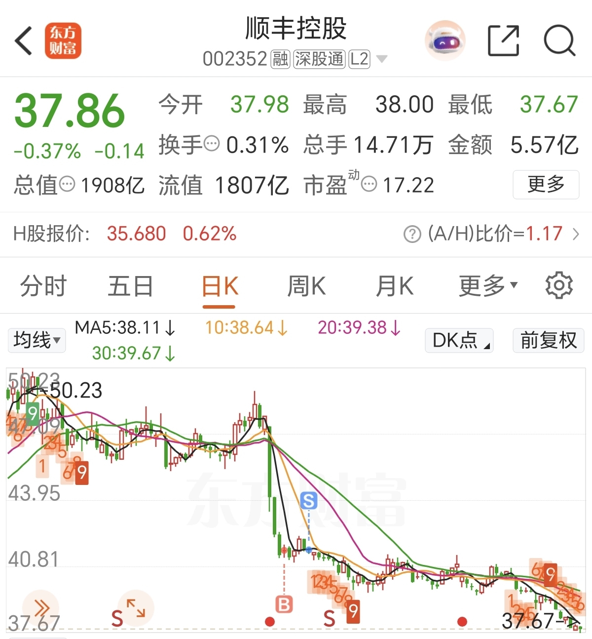 $顺丰控股(SZ002352)$ 太能跌了,还好走了