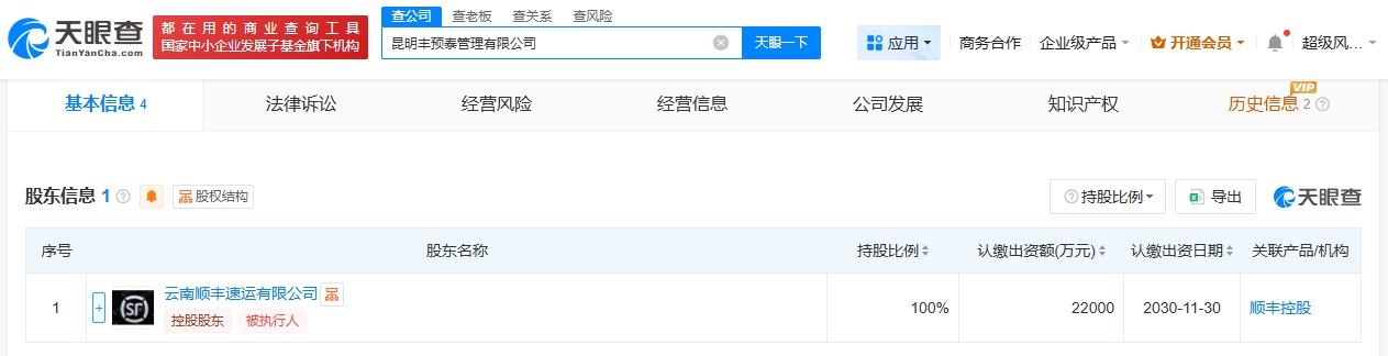 顺丰在昆明成立丰预泰管理公司