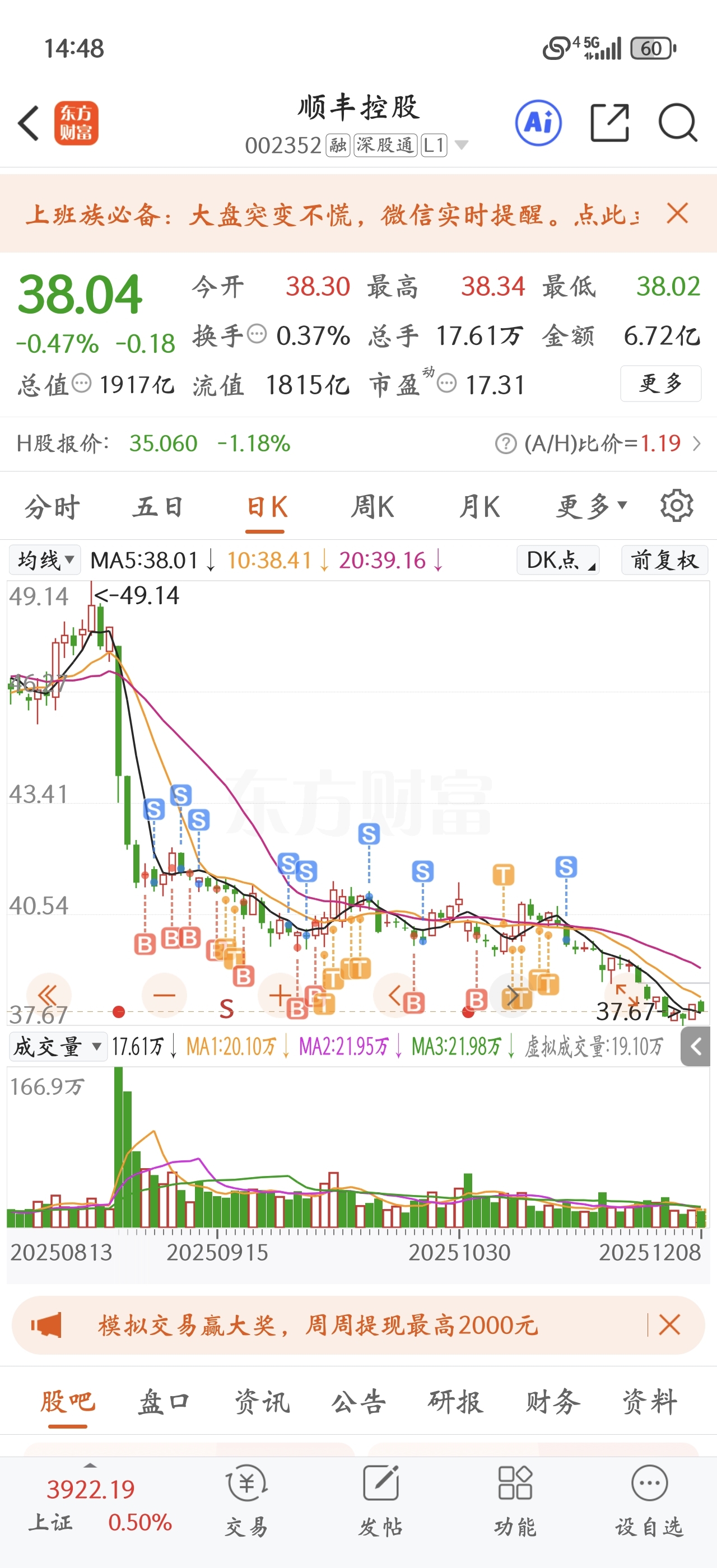 $顺丰控股(SZ002352)$ 和自由落体一样