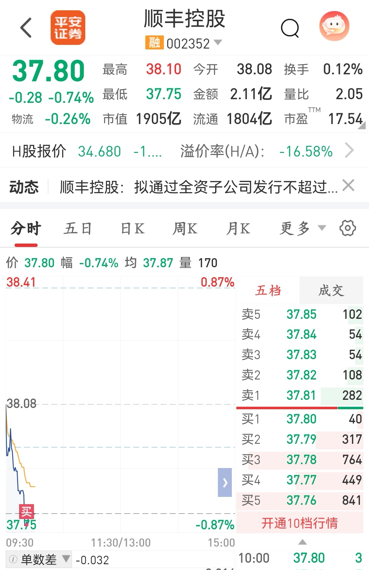 $顺丰控股(SZ002352)$ 上午先买这么多,下午有新的低点再买。