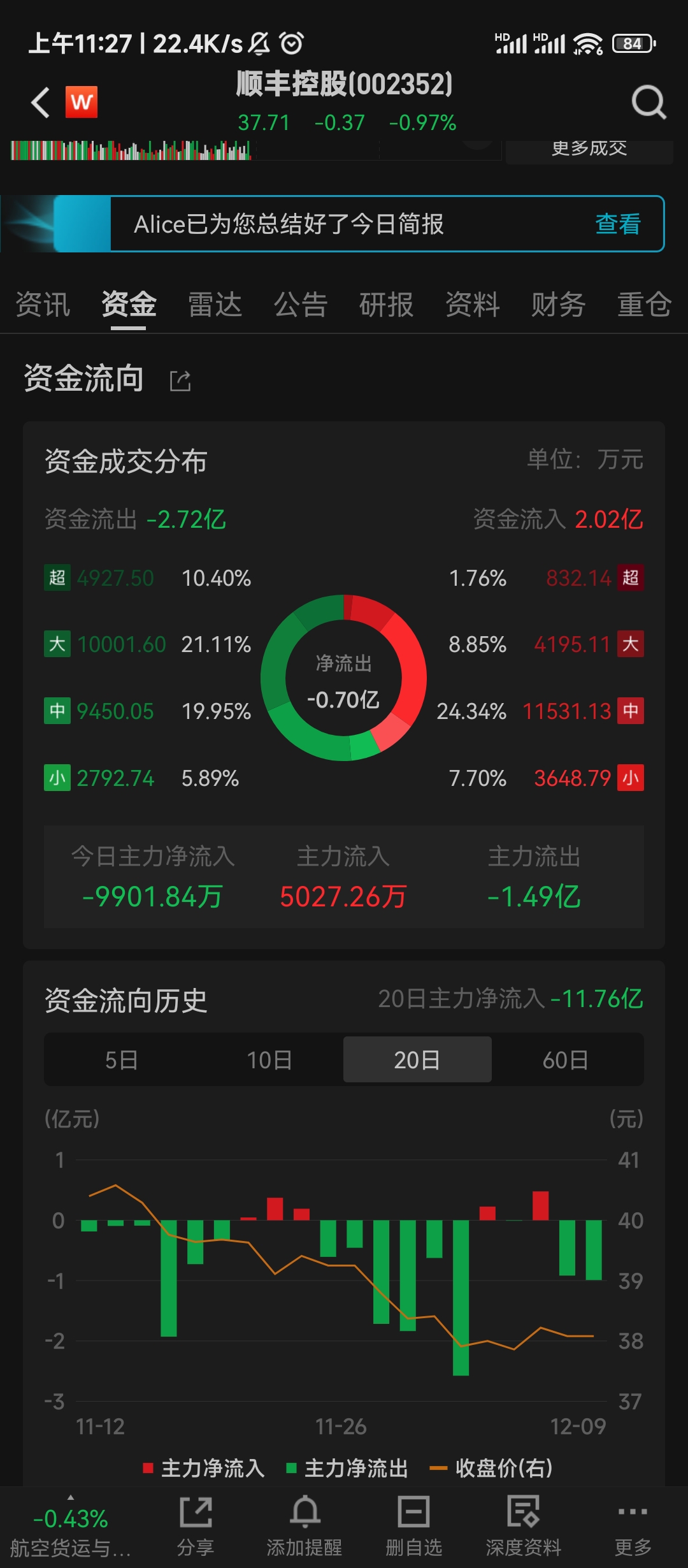 $顺丰控股(SZ002352)$ 主力快熬不住了,今天上午主力又交出来快一个亿的筹码,家人们的又一次胜利