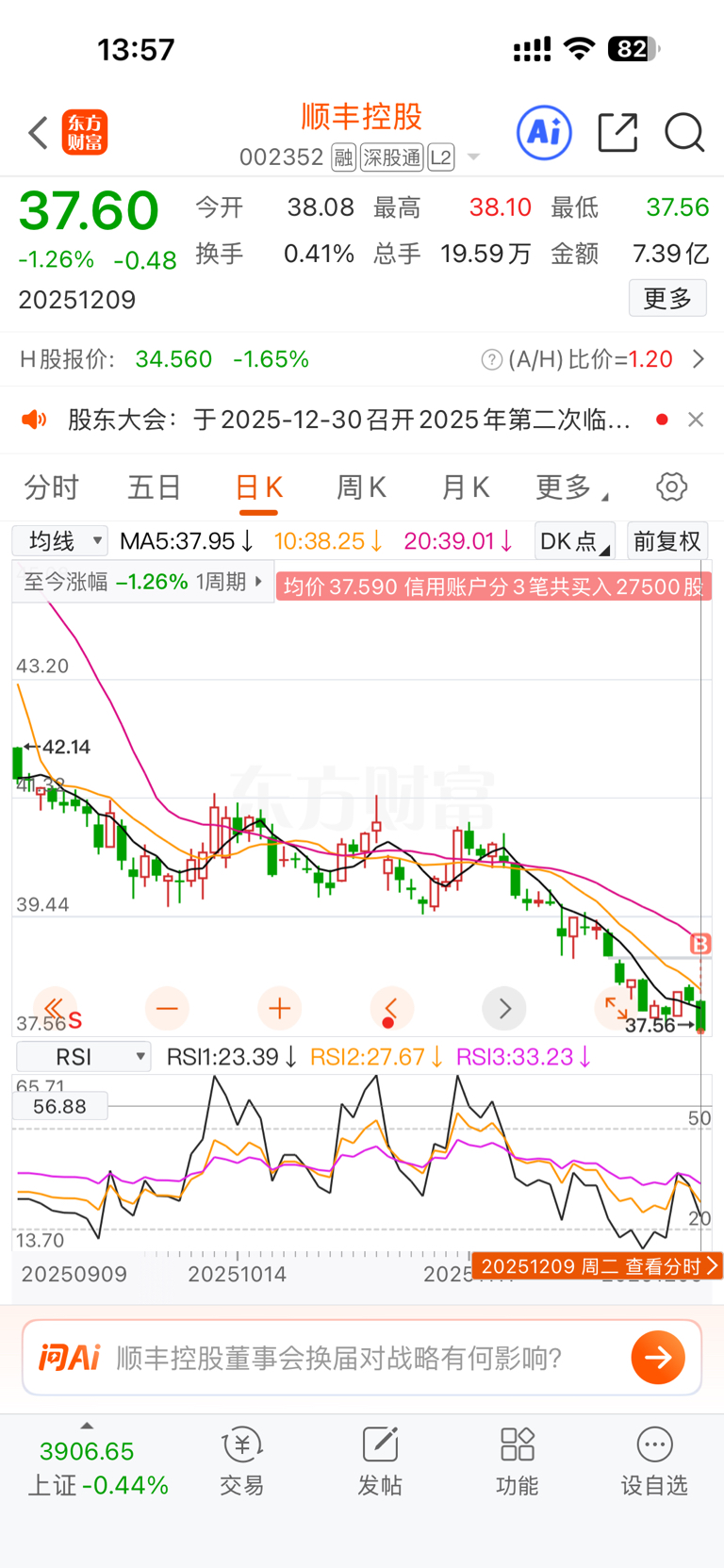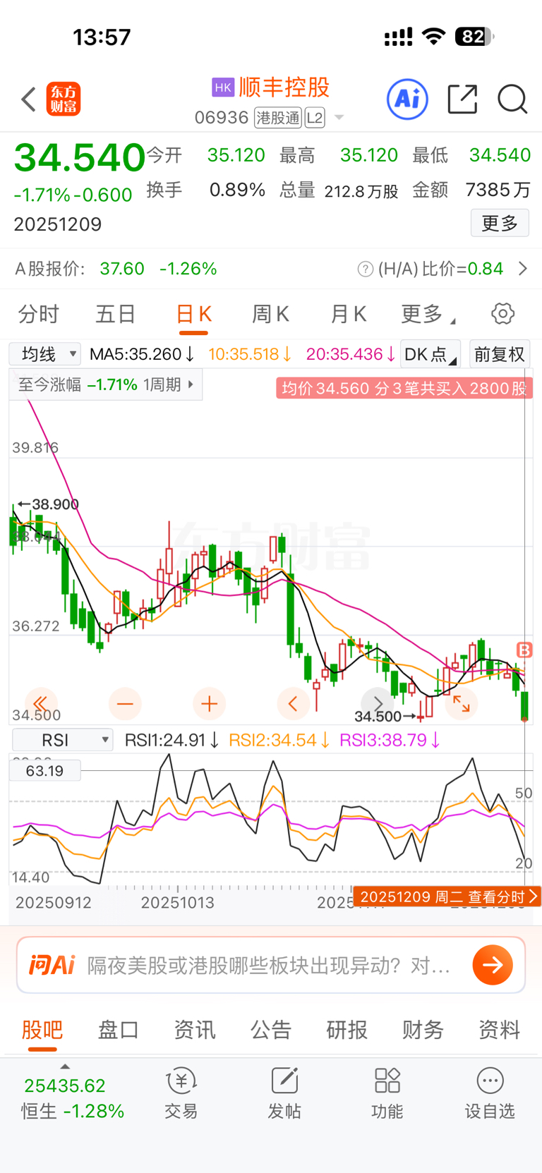 H股买了10万。A股买了103万。掉单顺丰。只因为看好王卫王总。王总如果能看到的