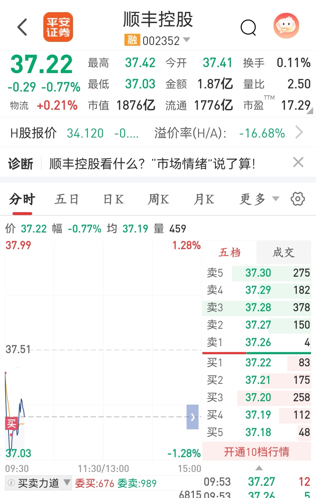 $顺丰控股(SZ002352)$ 继续建仓,上午先买这么多,下午收盘前有低点再买。