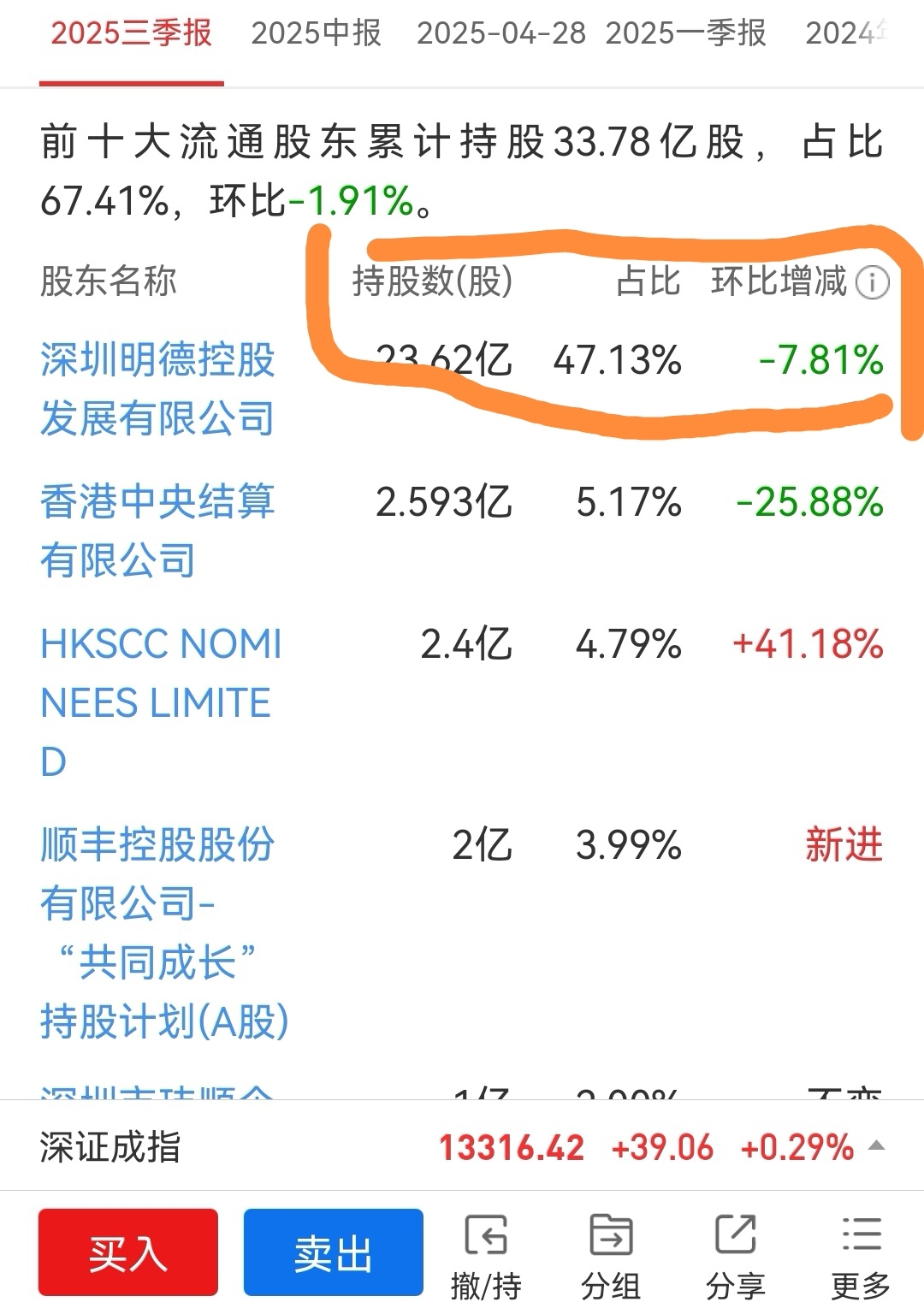 $顺丰控股(SZ002352)$ 这是哪家减持,什么意思