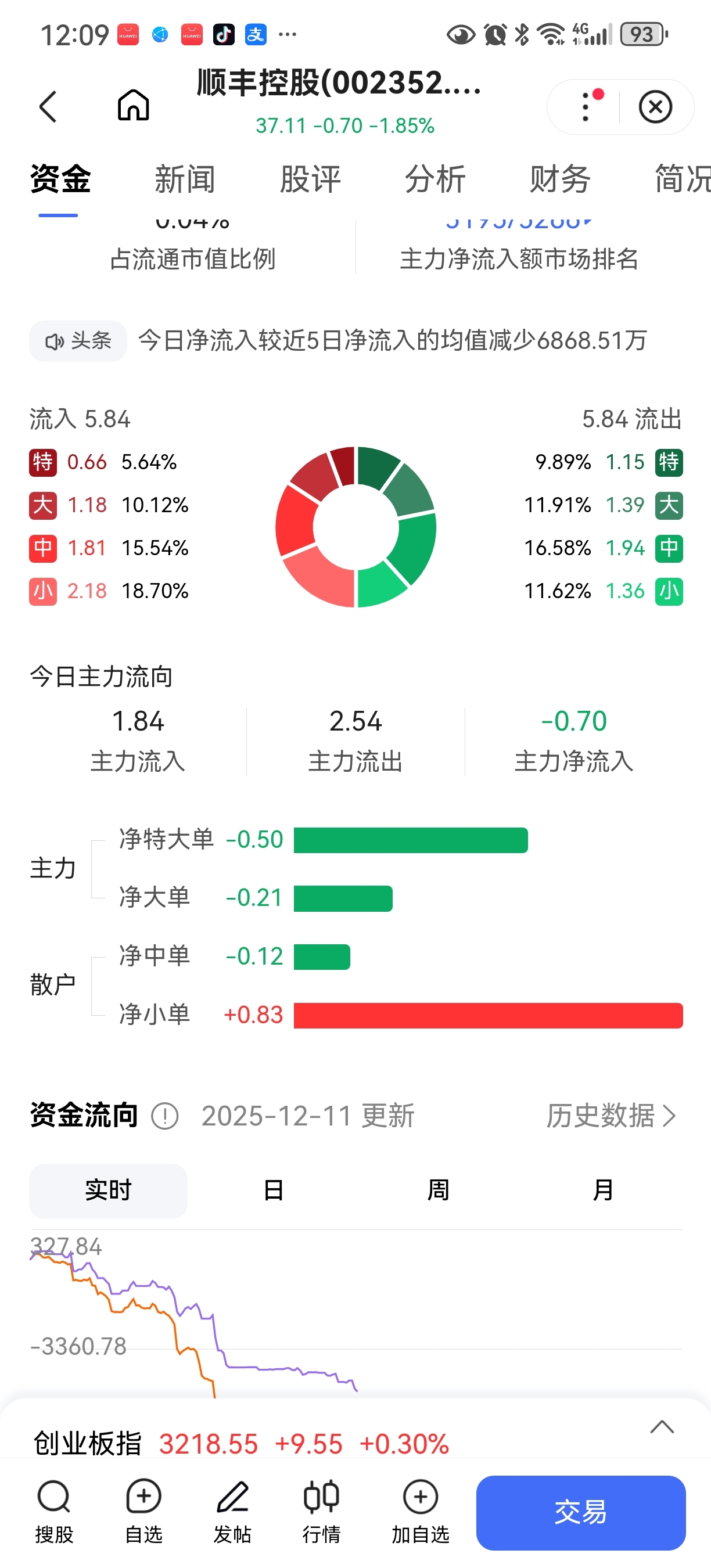 $顺丰控股(SZ002352)$ 把主力高兴坏了,散户是越跌越要买。撑死主力