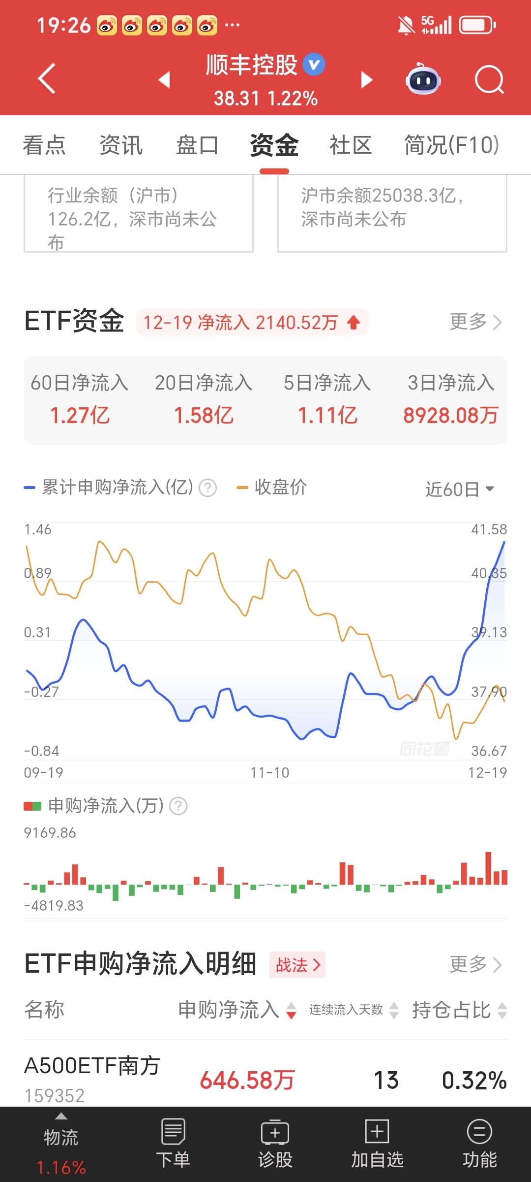 $顺丰控股(SZ002352)$ etf每天都是流入的