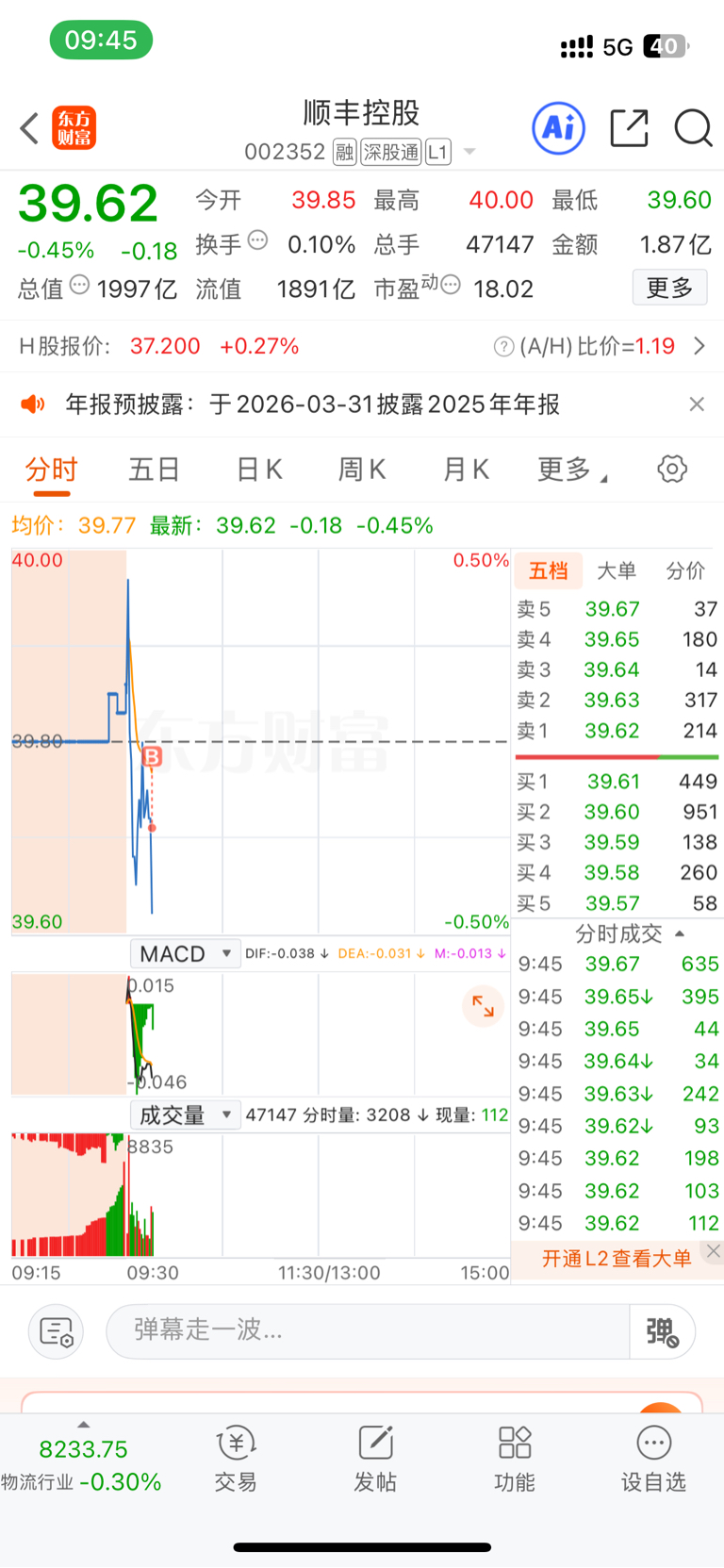 $顺丰控股(SZ002352)$ 套的好啊,刚买进就跌