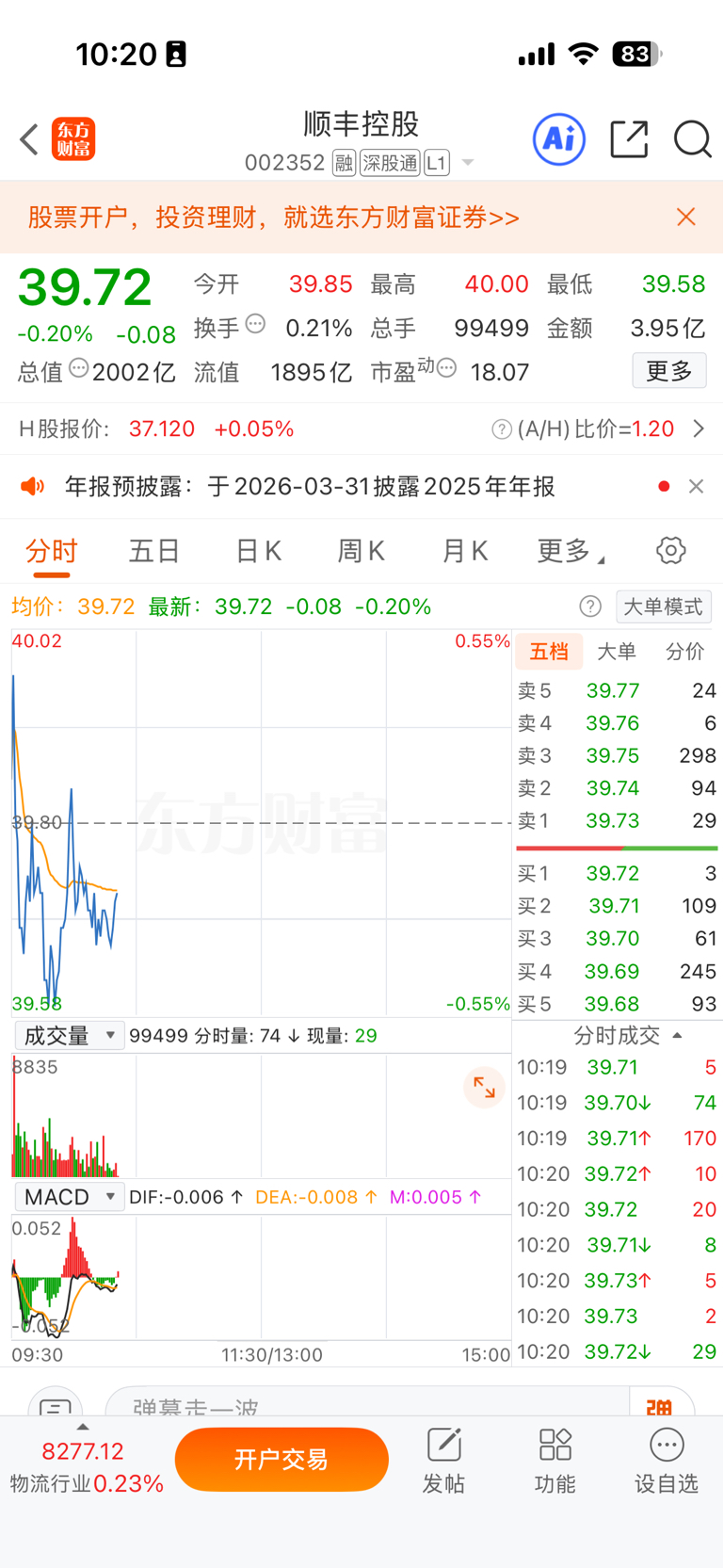 $顺丰控股(SZ002352)$ 2千亿市值的盘面这样子,看不懂啊!今天不操作看戏