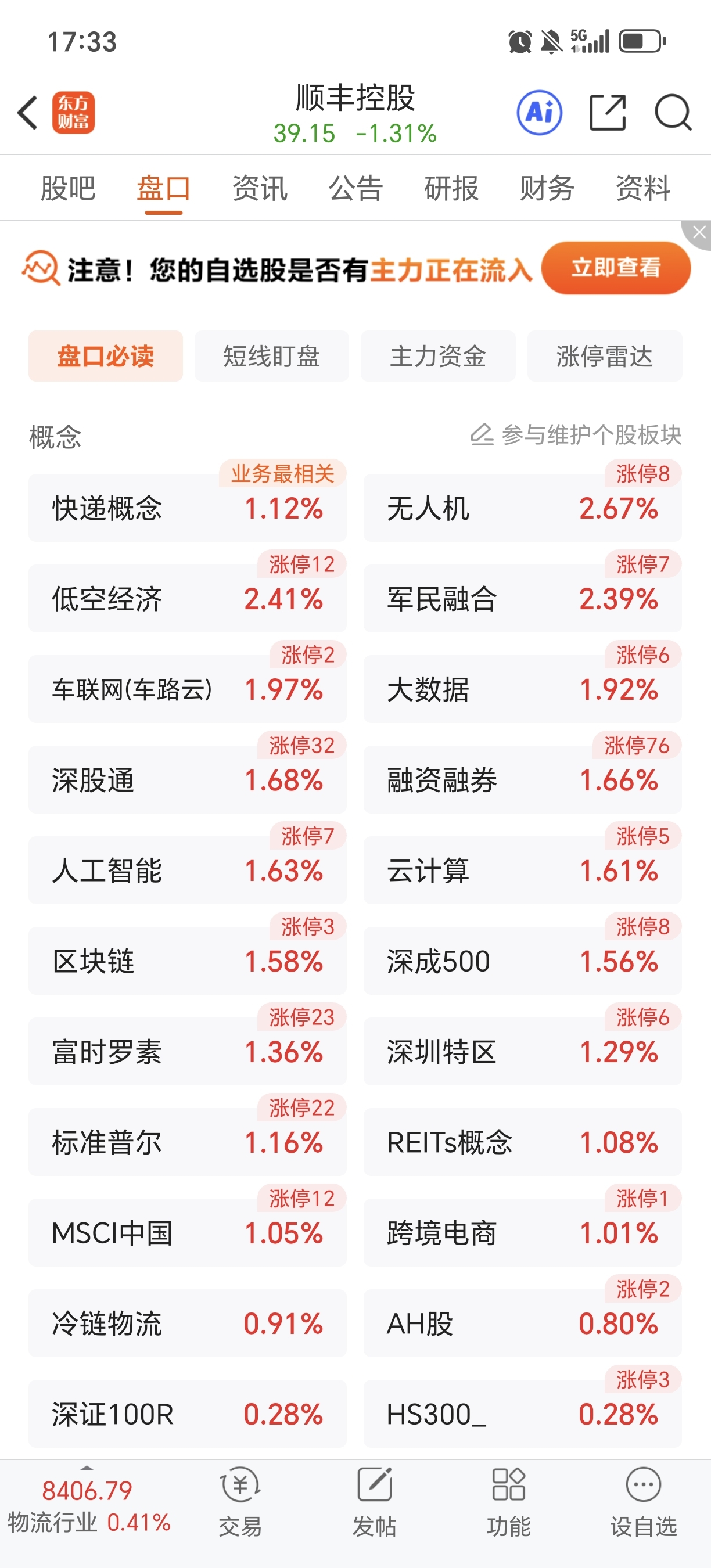 $顺丰控股(SZ002352)$ 还物流龙头,有没有拉几概念,你可以去当龙头