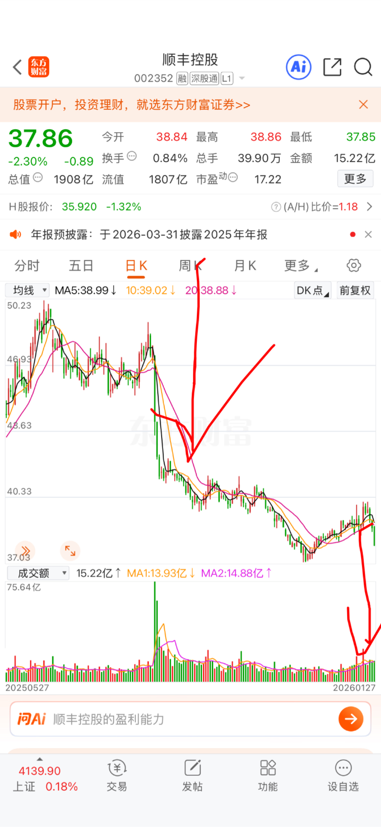 $顺丰控股(SZ002352)$ 开启新的下跌波段,大家拭目以待,四季度公司现金流紧张,飞机等重型资产折旧,年度利润非常吓人
