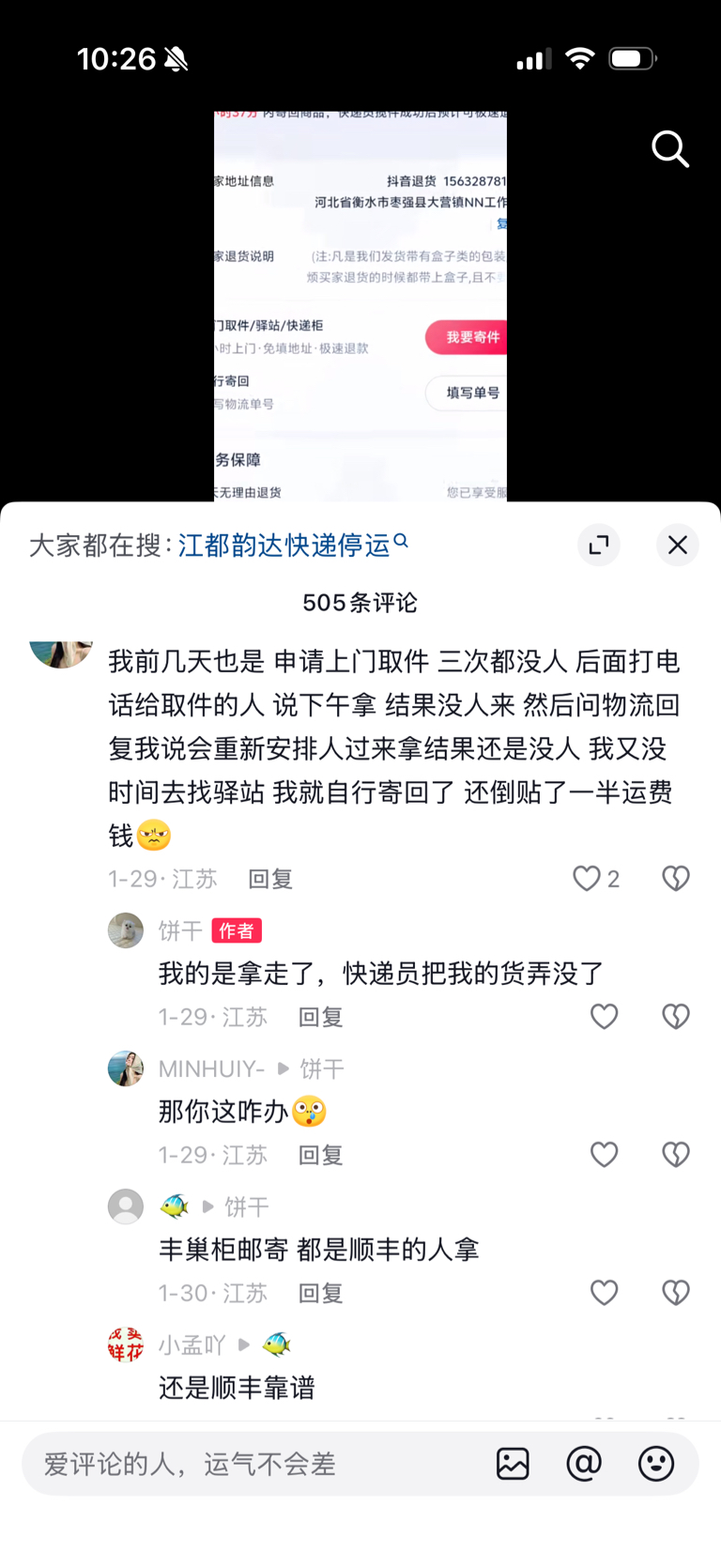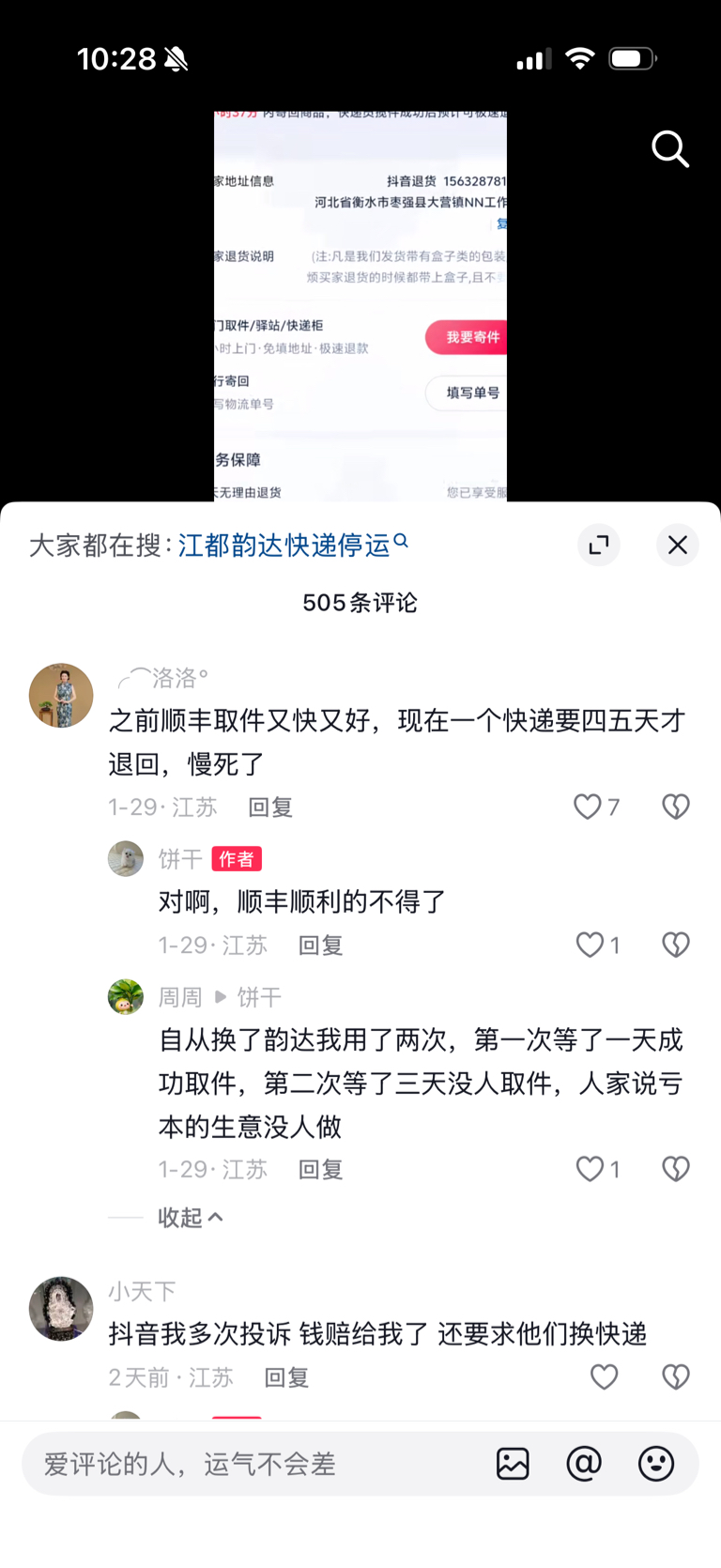 有图有真相的!为啥说顺丰抖退逆向件以及各种商务件高端件等散件做得口碑好服务质量好呢?你们可以多关注多搜索消费者最真实的评价,还可以多调研。1.拿抖退为例子,韵达在部分地区也承接少量抖退逆向件,但是消费者不断吐槽韵达快递员不取件、取件慢、不上门、物流没信息。2.相反的大量消费者反馈之前这个业务顺丰做的时候,服务好、取件快,时效好。我长期跟踪抖退的情况,没有哪个快递公司能和顺丰比的,不管是京东物流,还是中通,都差距很大的。所以我一直强调一点,顺丰他散件快递员确实多,而且密度大,除了抖退他平常散件就多,因为根据我调查他在商务楼、小区、酒店等消费者寄件是真的多,有那么大的取件密度,那么多的快递员,那么好的服务态度,所以才能把抖退做得那么好。我觉得这个业务人家顺丰确实做得好,抖音你如果要做品质电商,或者你想抖音超市未来做得更好,你不管是抖音超市也好,还是抖音逆向件也好,你要做品质电商,你其实唯一选择就是和顺丰合作。包括阿里、快手、拼多多,也是如此的。顺丰他是中立的,他又服务最好,电商巨头合作你觉得会选择京东物流吗?物流是电商的核心,你会把商业秘密完全暴露在京东面前吗?所以顺丰是具有稀缺性和垄断性,他有机场和飞机,有航线, 他做高端,做生鲜,做医药冷链都有优势,具有先发优势和规模优势以及长期的品牌优势。目前国内能和他有一点颁手腕能力的就京东物流,但是也落后很多。长远看我觉得顺丰所处额度高端快递业务还是会增长的,因为高端在电商和线下比减少了环节降低了成本,高端在电商更有优势。比方说手机、白酒茅台、空调、电脑、生鲜水果、医药冷链等你在线上价格比线下便宜太多了,而且有保证正品。当然整个高端增速不会很快,业务量和营收年均增长也就5%到8%左右,但是利润弹性可以做到年均增长15%以上。当然顺丰还会有很多爆发力的业务,比如同城快递、供应链和出海等。整体而言,我投资顺丰主要是确定了他未来可以持续增长很多年,确定了他竞争力在增强且具有垄断性,最后一个他目前股价跌了很多年业绩也增长很多年,已经到达很低估的位置。那么我现在买,预计三年内翻倍以上收益,所以我就投资了。$顺丰控股(SZ002352)$ $京东物流(02618)$$韵达股份(SZ002120)$