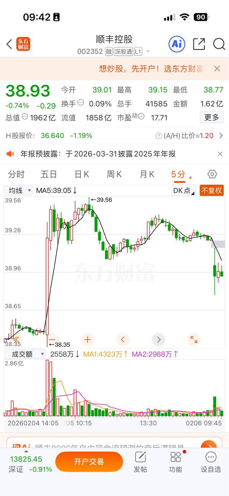 $顺丰控股(SZ002352)$ 昨天进的全部被套,上午看换手能达到10个亿不能