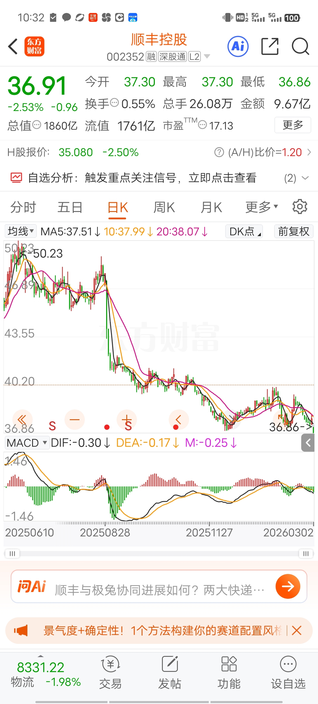 $顺丰控股(SZ002352)$ 这走势要破产了