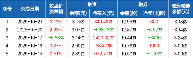 杰瑞股份:融资净买入349.48万元,融资余额3.11亿元(10-21)