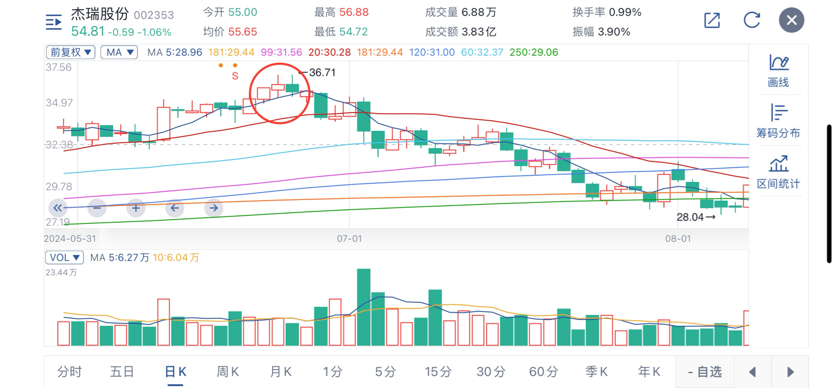 $杰瑞股份(SZ002353)$ 长上引双顶形态,典型穷途末路走势,之后要套多少都不知道