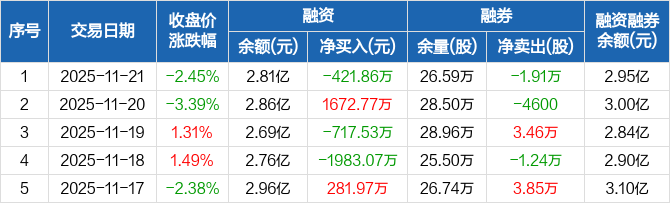 杰瑞股份:融资净偿还421.86万元,融资余额2.81亿元(11-21)