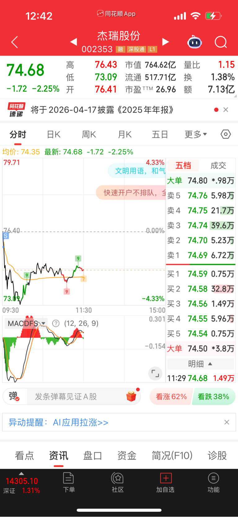 $杰瑞股份(SZ002353)$ 赚了3个点就跑了