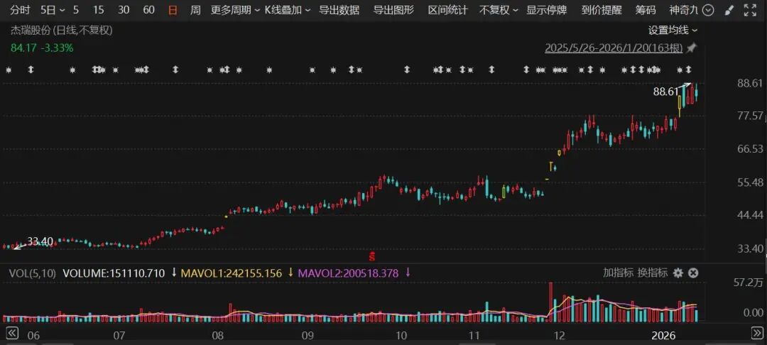 作为国内高端装备制造企业,杰瑞股份的业务覆盖油气田开发、新能源等领域。截至发稿,该公司股价报84.17元/股,较2023年6月份(前复权)的最低点21.26元累计上涨约3倍,成为A股油气装备领域的3倍“大牛股”。