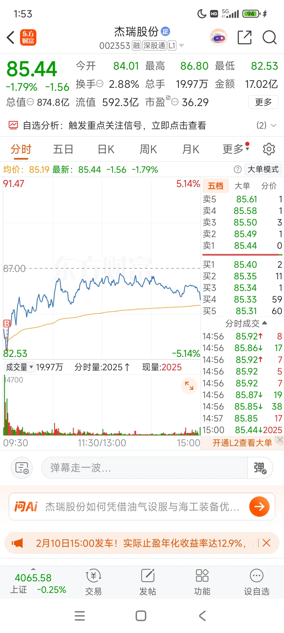 $杰瑞股份(SZ002353)$ 我的判断一般不会出错,就想知道周四虽然杰瑞大跌,但周五才是最佳抄底时间,下周必修复回90-95位置