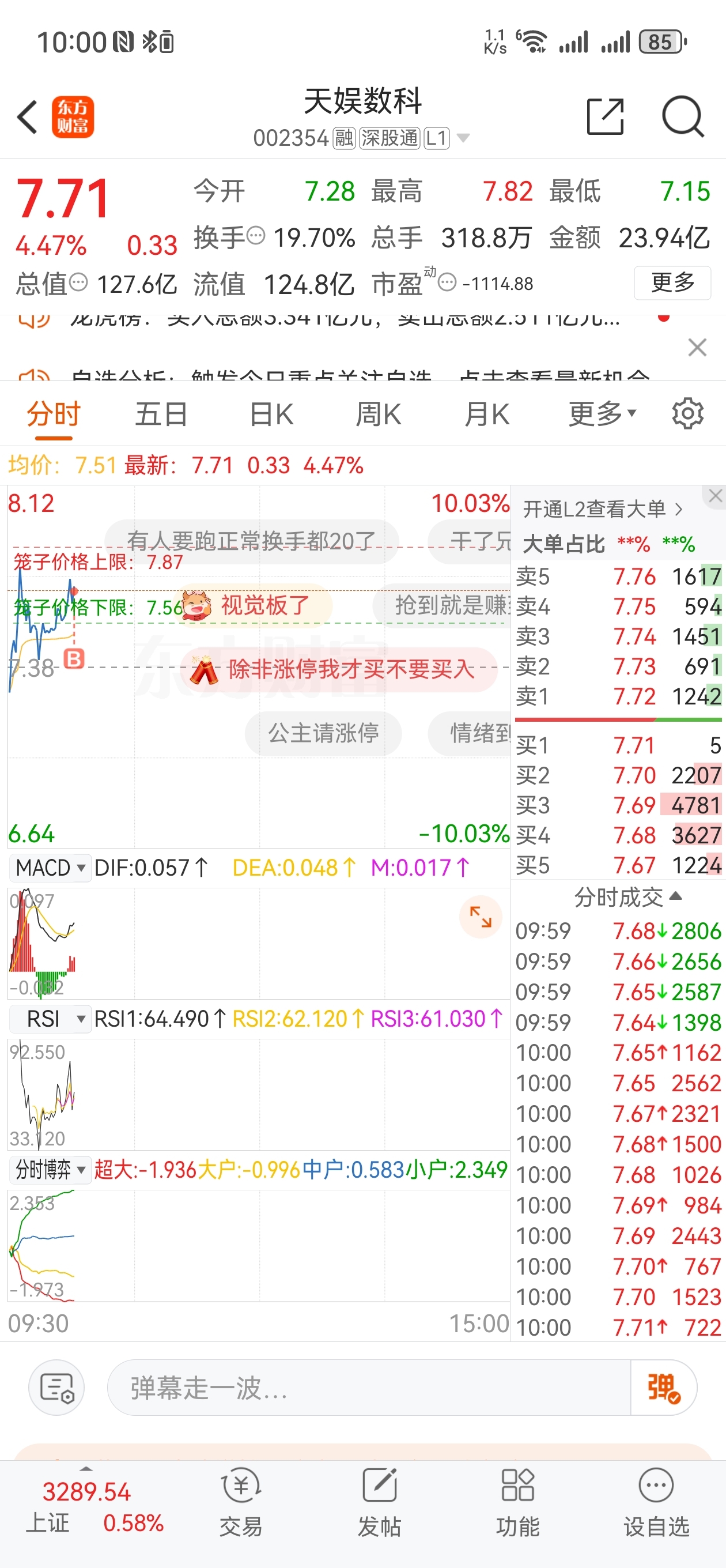 $天娱数科(SZ002354)$ 两个多点没进,四个多点进了,我真是个人才