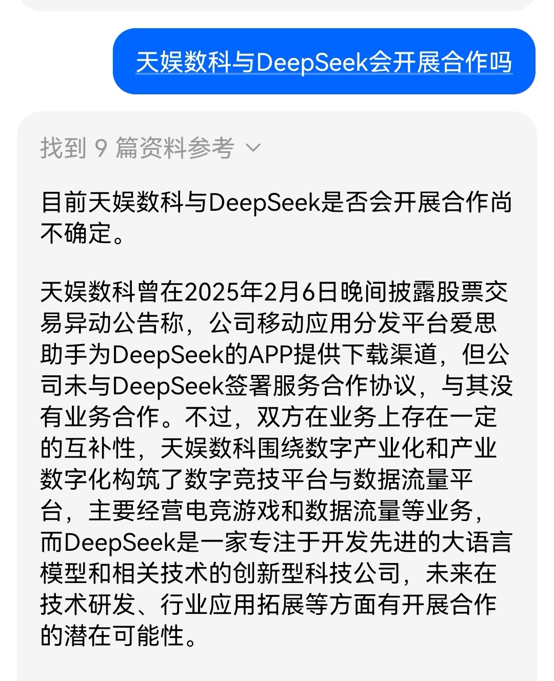 天娱数科与DeepSeek在业务上存在互补性天娱数科与DeepSeek在业务上存