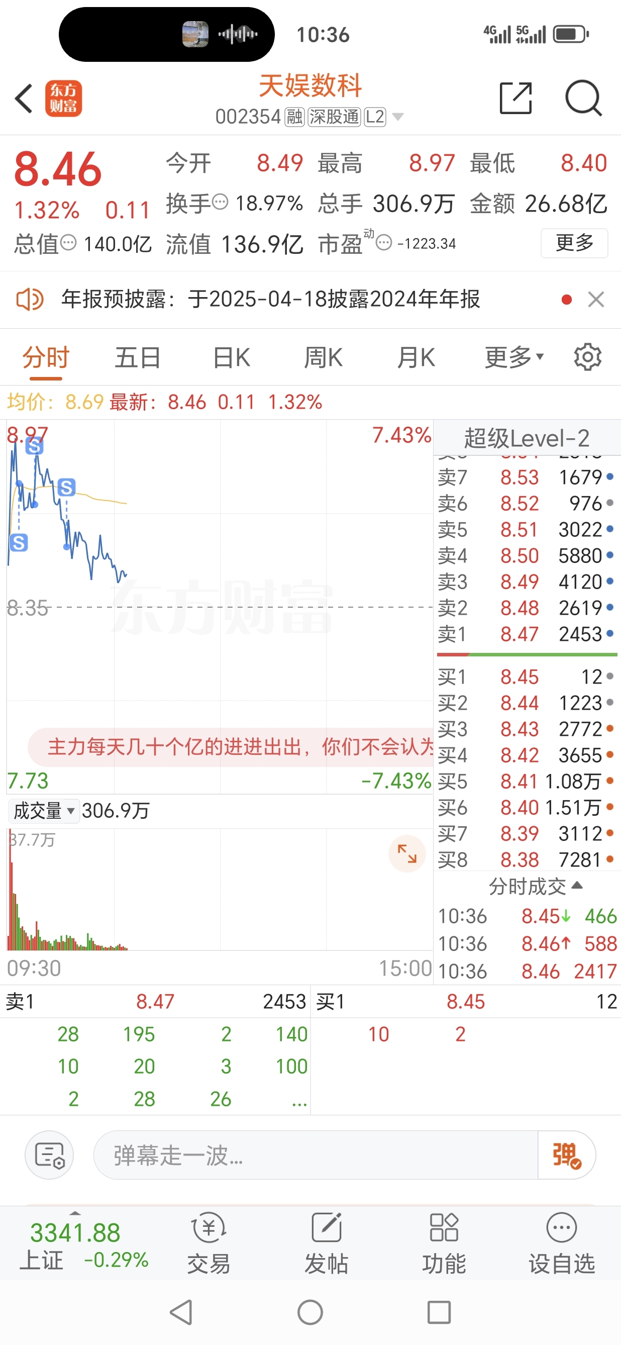 $天娱数科(SZ002354)$ 分批跑完了,谢谢主力