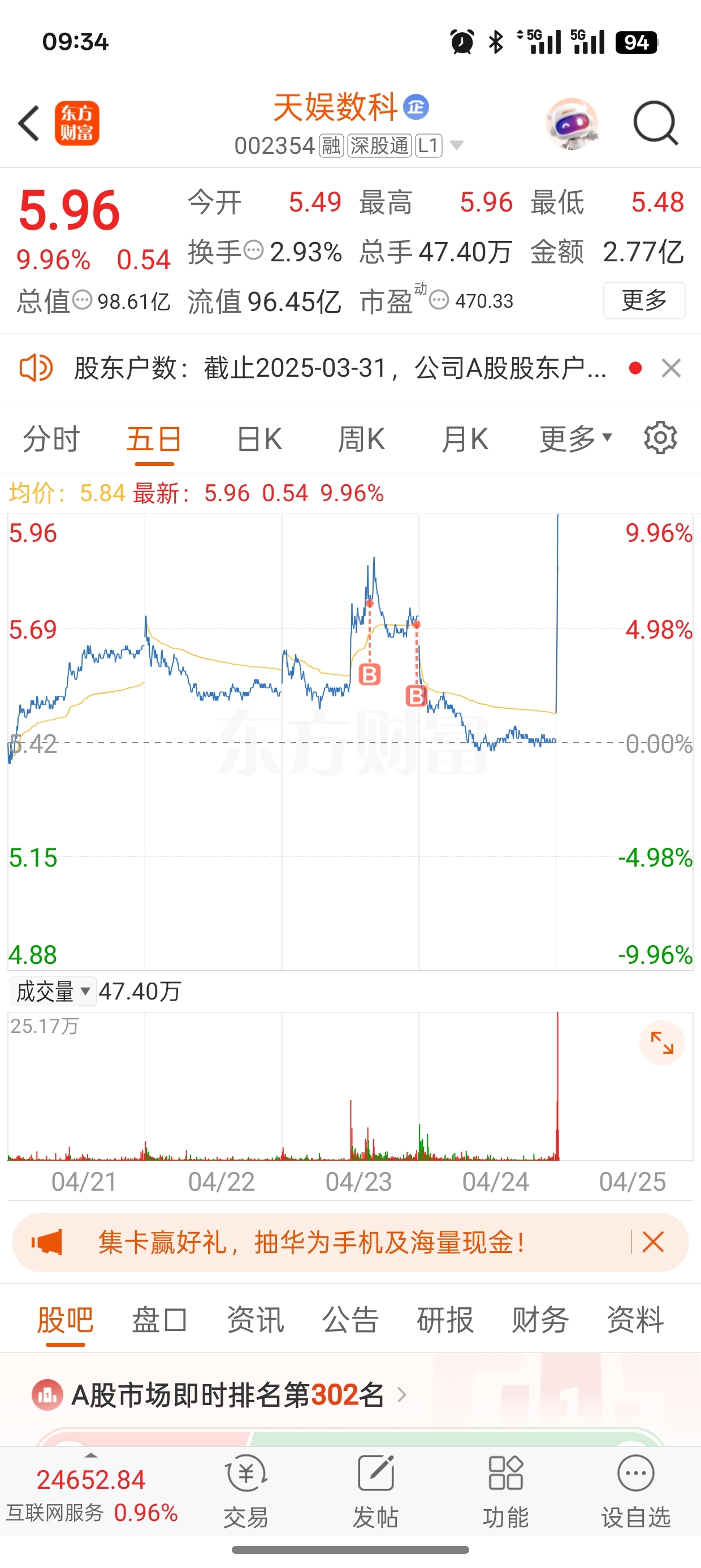 $天娱数科(SZ002354)$ 祸兮福所倚,福兮祸所伏。福祸相!成本一直八块多,前天看着拉高以为来了,加仓加高了,悔的我睡不着,加了一倍的仓位成本下来了,以为惨了,结果今天涨停,我没料到