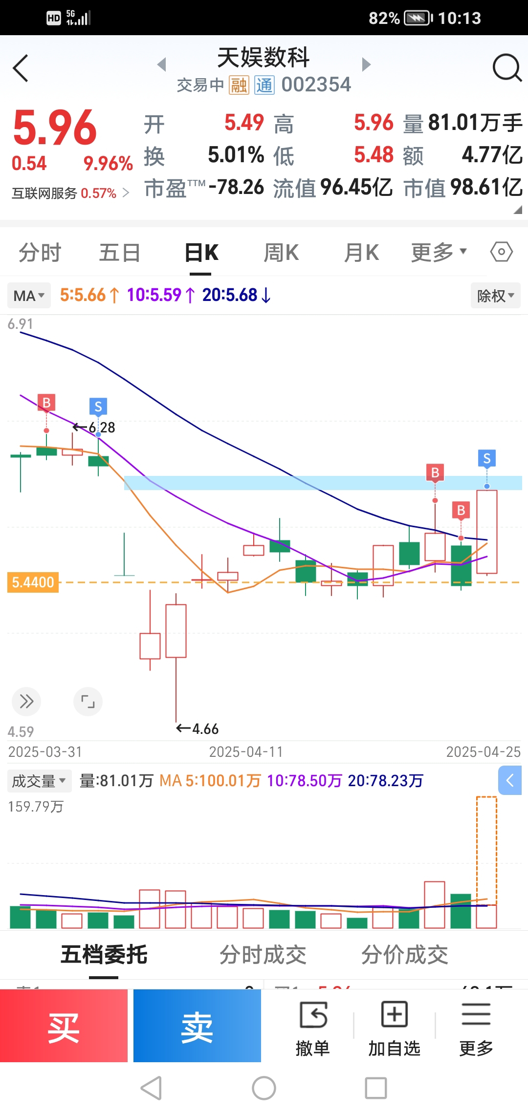 $天娱数科(SZ002354)$ 没想到这么猛!可惜了,一早5.62就卖半仓