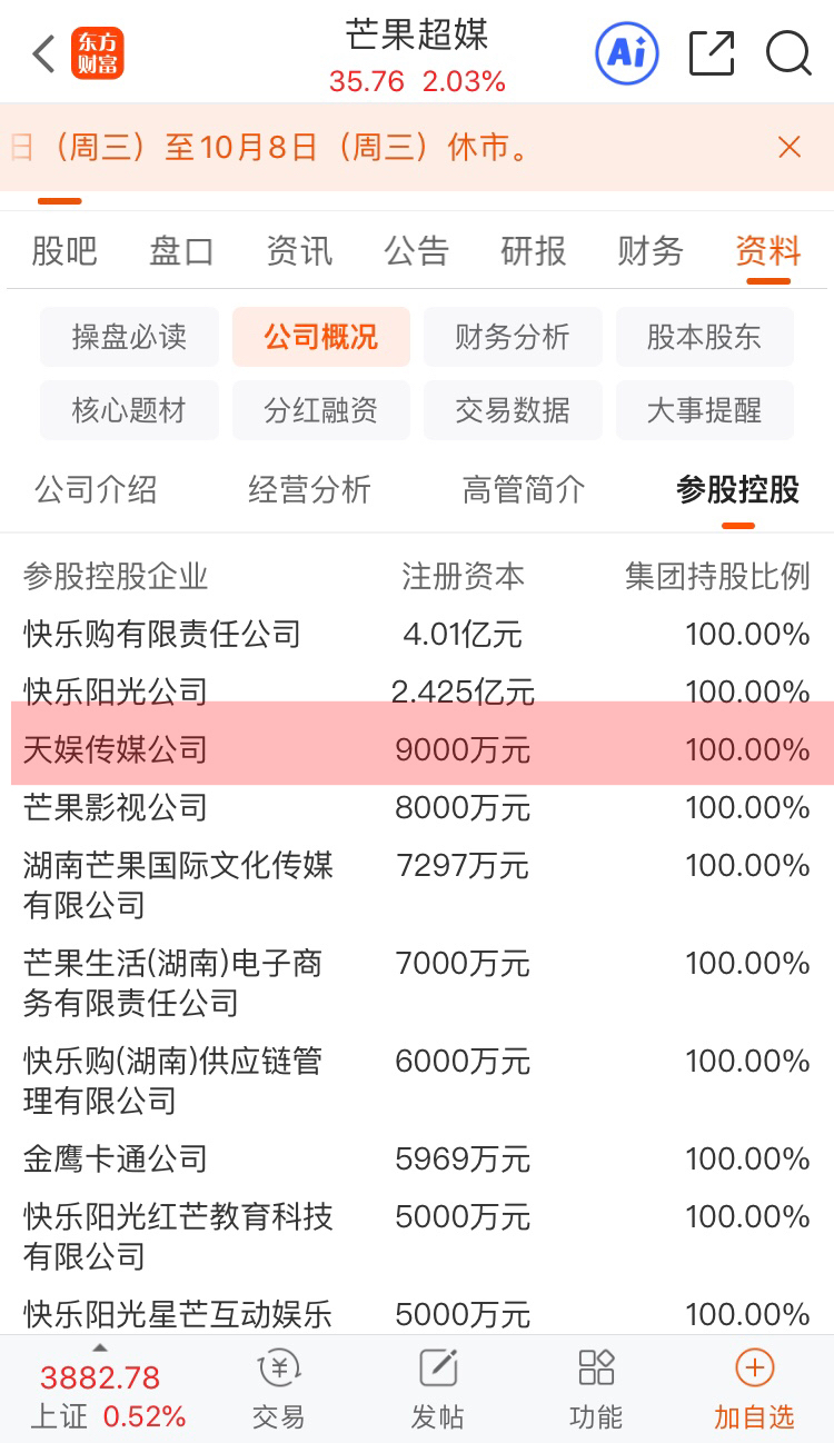 天娱传媒是芒果超媒旗下的子公司,跟天娱数科没关系,大家不要被误导了,百度可以修改