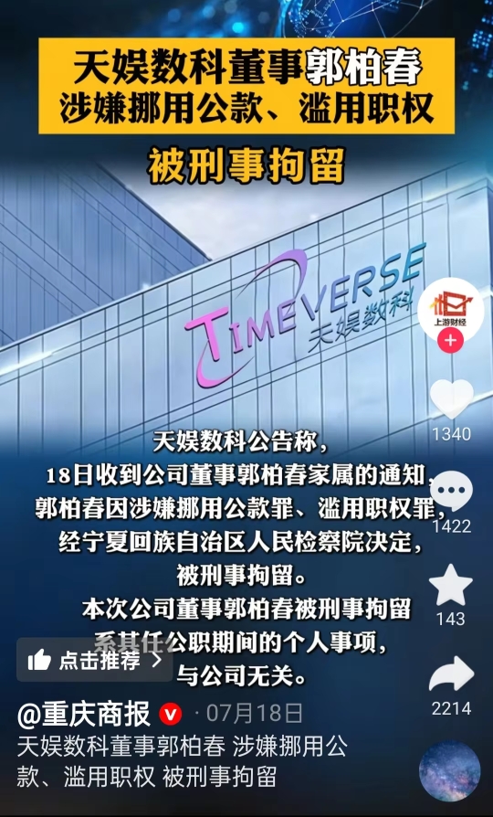 $天娱数科(SZ002354)$ 这种会对股票造成影响吗
