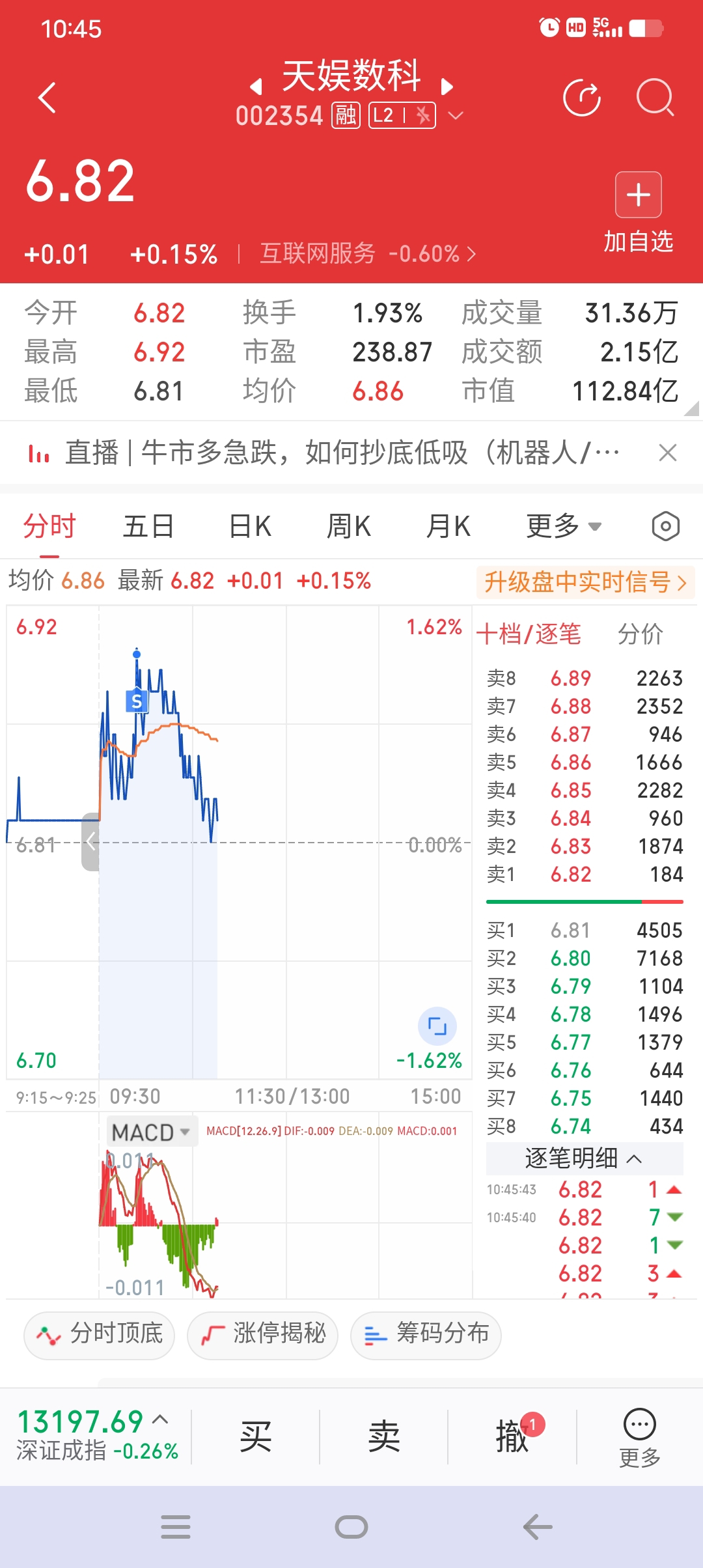 $天娱数科(SZ002354)$ 6.71排队中……谢谢大佬们